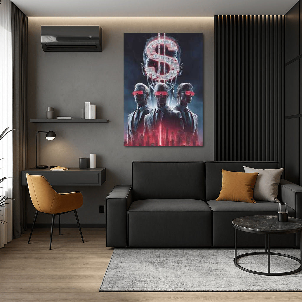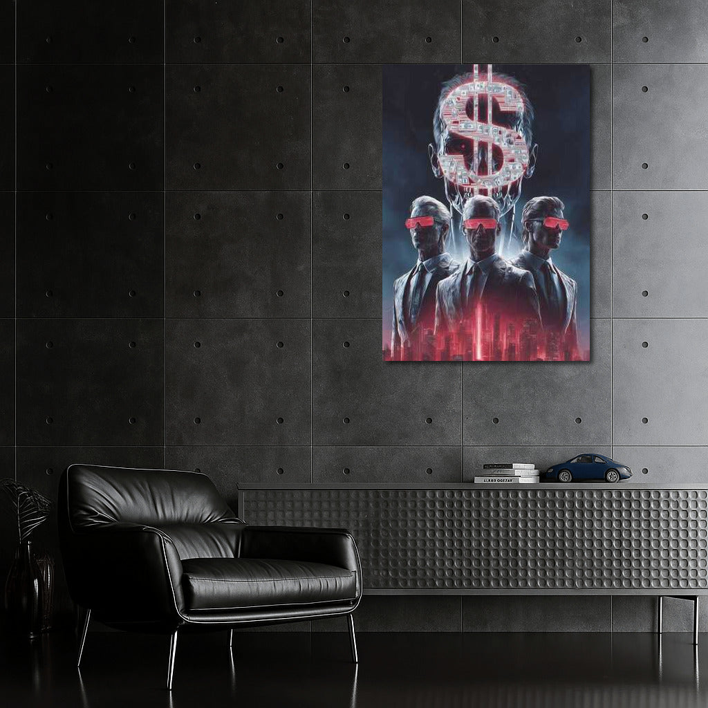Dive into the world of money and mystery with this poster. Bold wall art with scarlet accents and a mysterious atmosphere. See more from the collection: Money Art