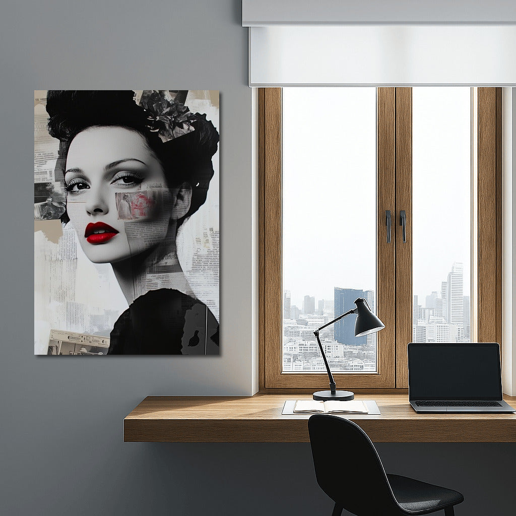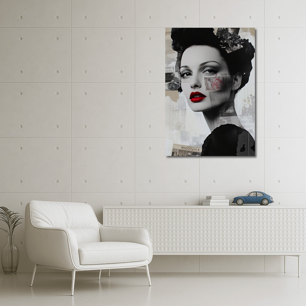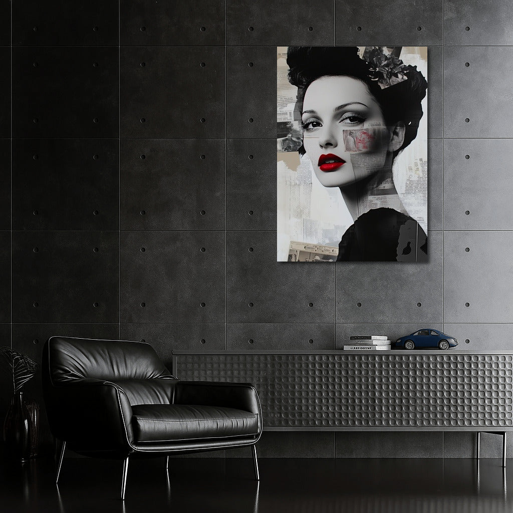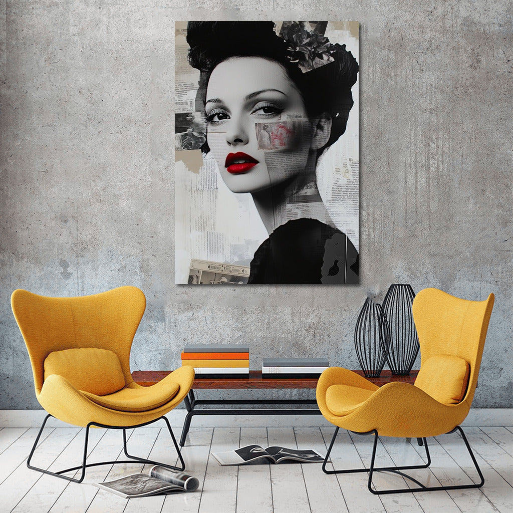 An elegant poster with a girl in black and white tones and bright red lips is a stylish wall art for your interior. See more from the collection: Mixed Wall Art