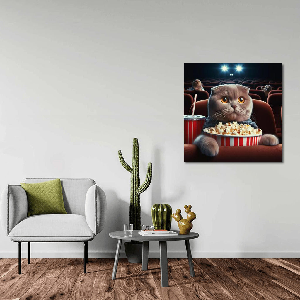 Scottish Fold Cat at the Movies with Popcorn: Cozy Evening Wall Art