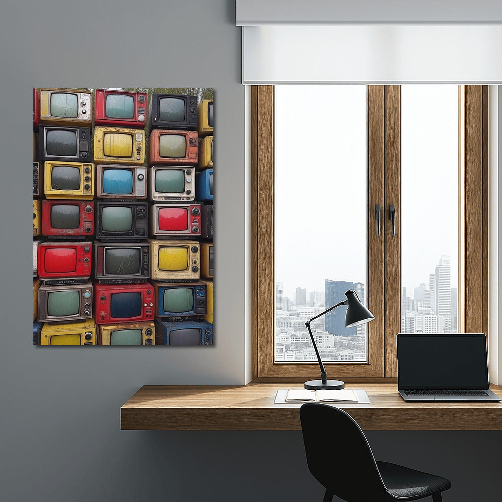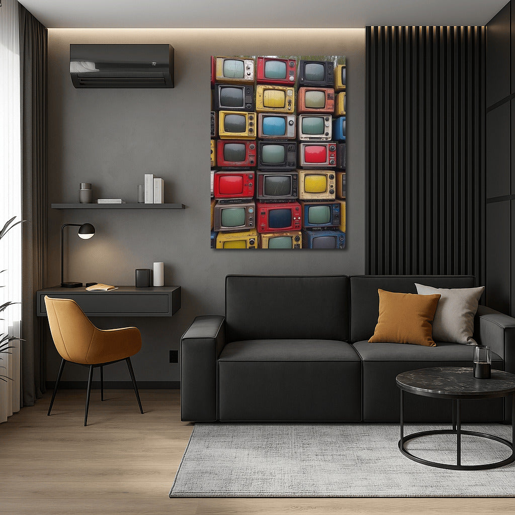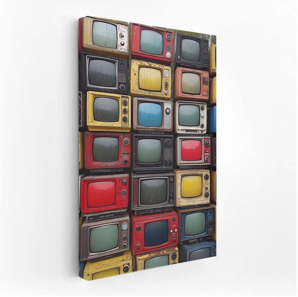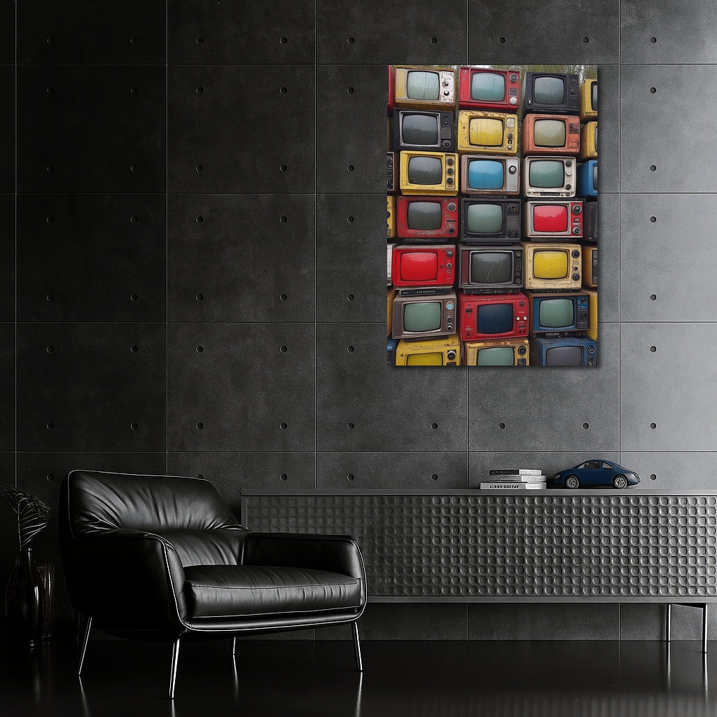 A vibrant poster of retro TVs that creates nostalgia. Add some originality to your interior with this wall art. See more from the collection: Mixed Wall Art