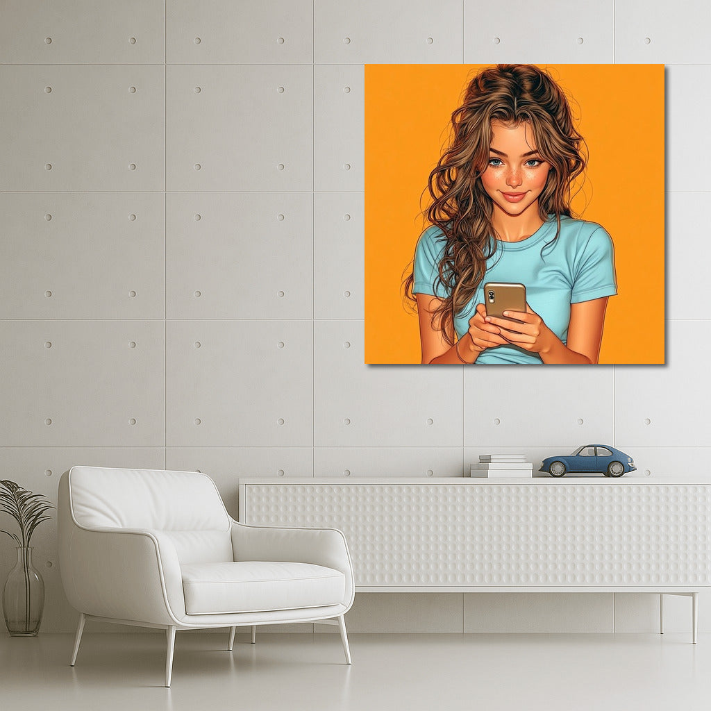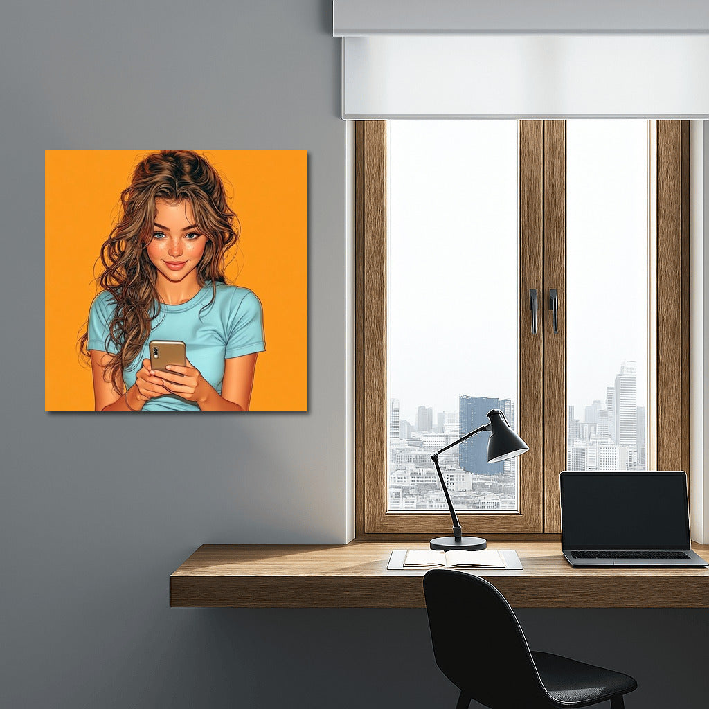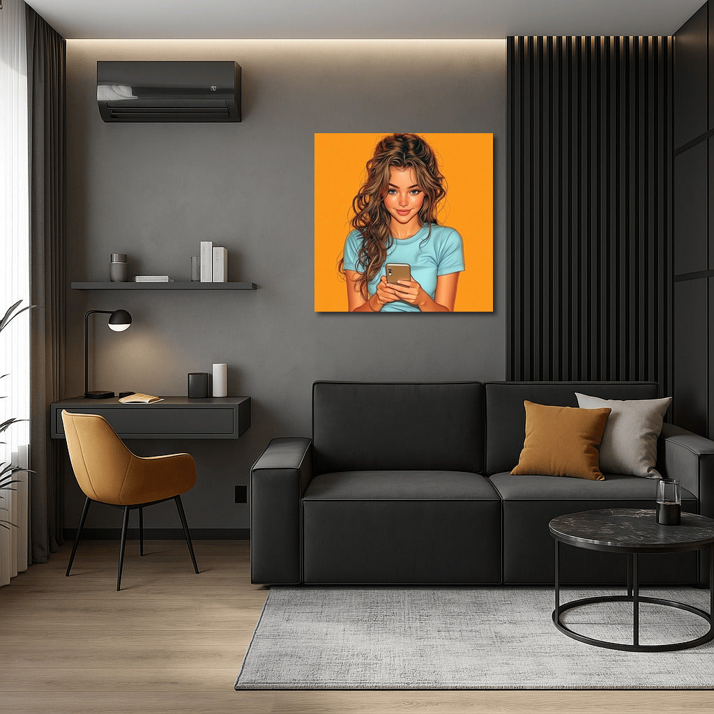Digital painting with a mysterious person immersed in the phone screen. Modern wall art for your interior! See more from the collection: Mixed Wall Art