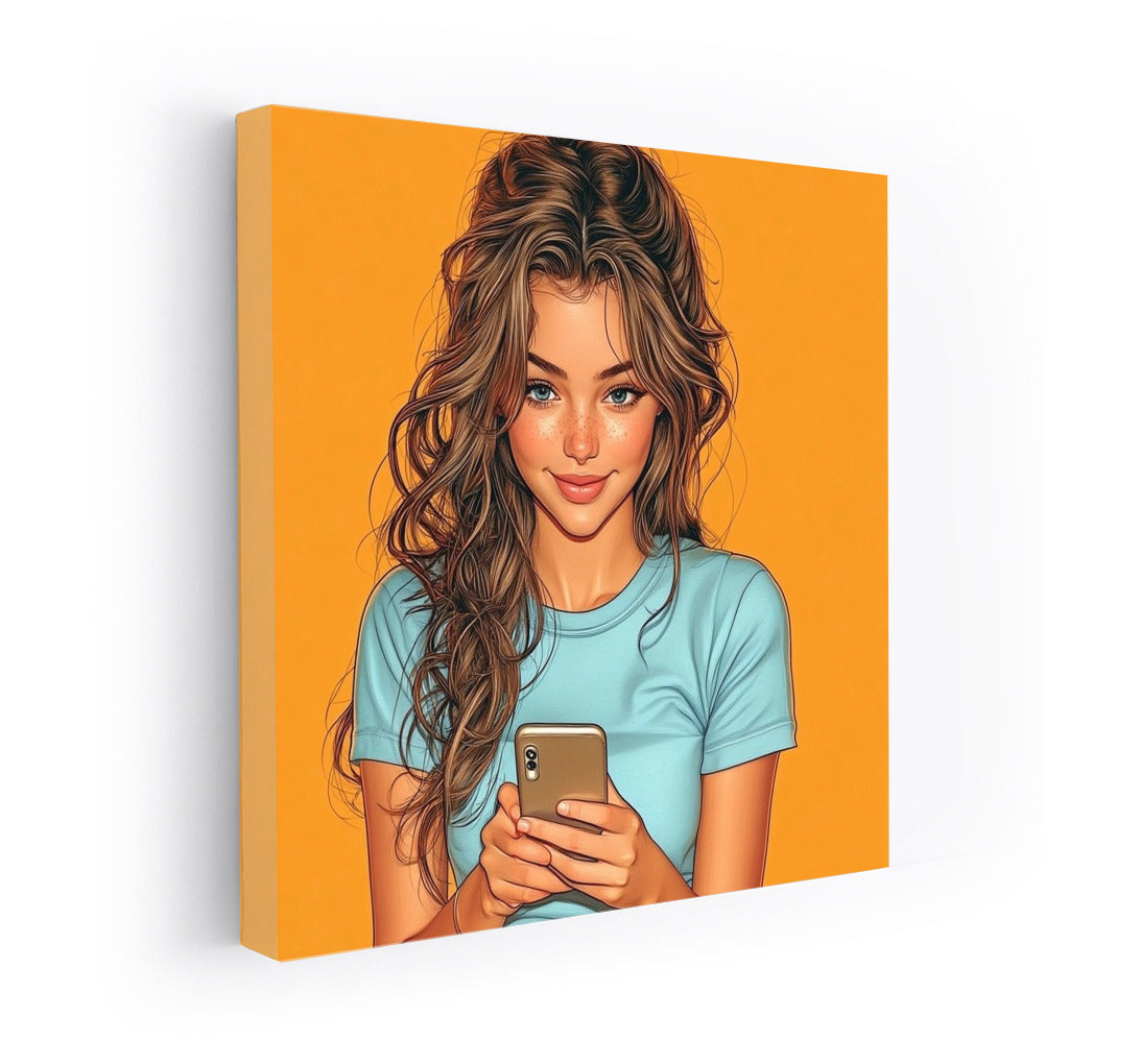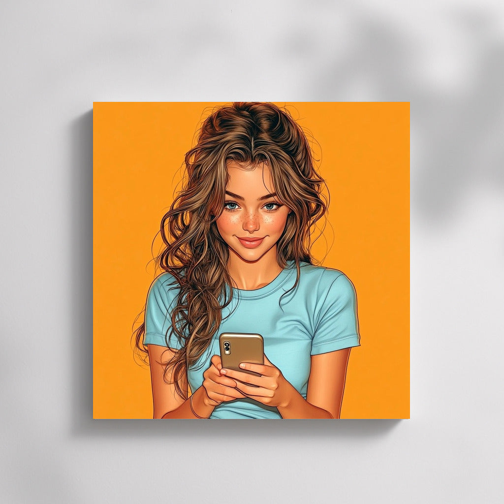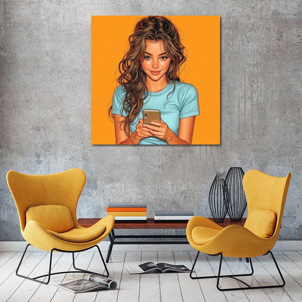 Digital painting with a mysterious person immersed in the phone screen. Modern wall art for your interior! See more from the collection: Mixed Wall Art