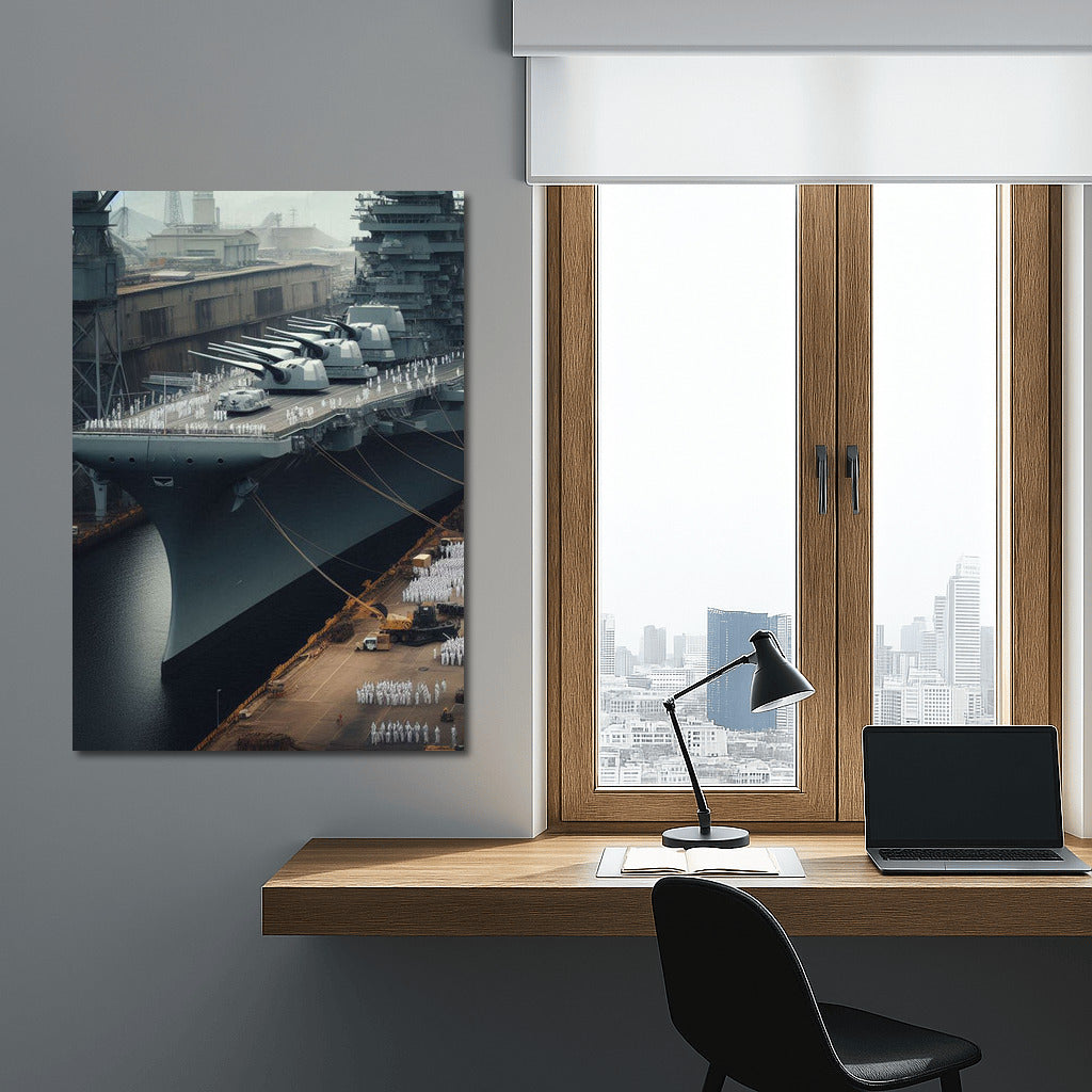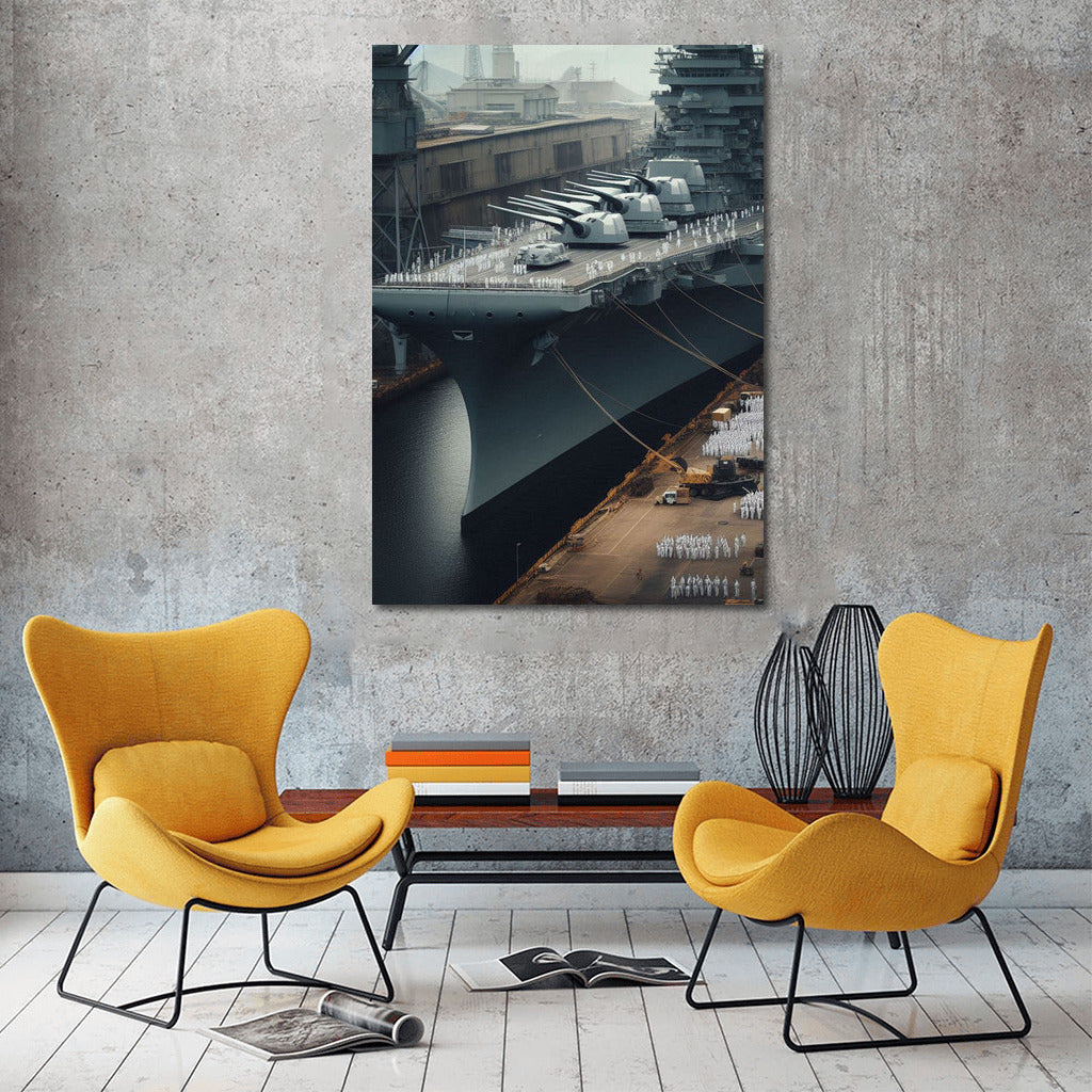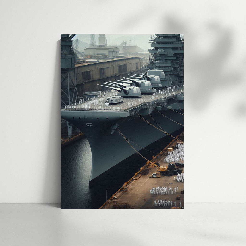 Power and grandeur in every stroke. The painting Battleships Harbor 1 is your portal to the world of maritime history. Wall art with meaning. See more from the collection: Military & Veterans Art