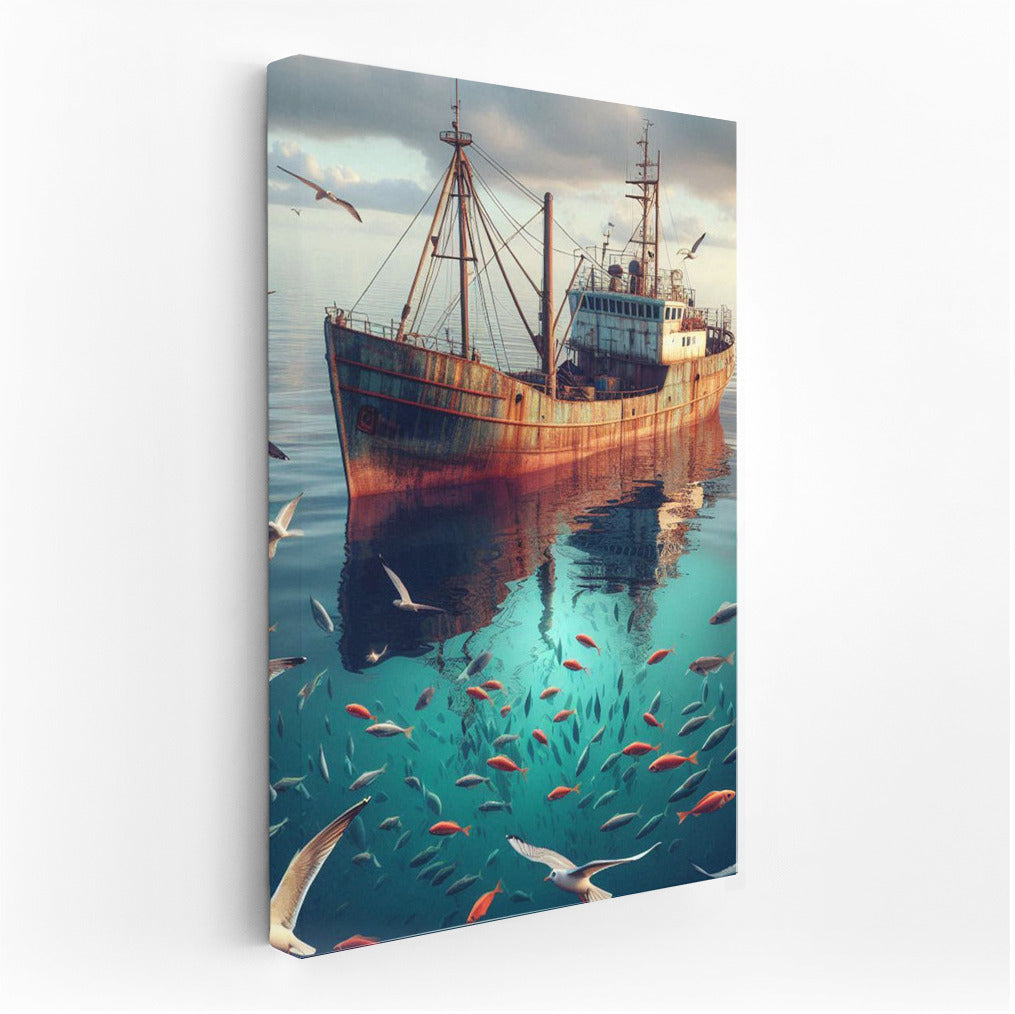 Sea Trawlers: Dance of Waves and Seagulls Wall Art