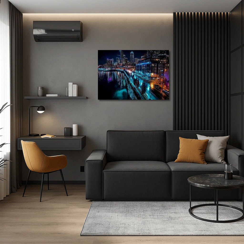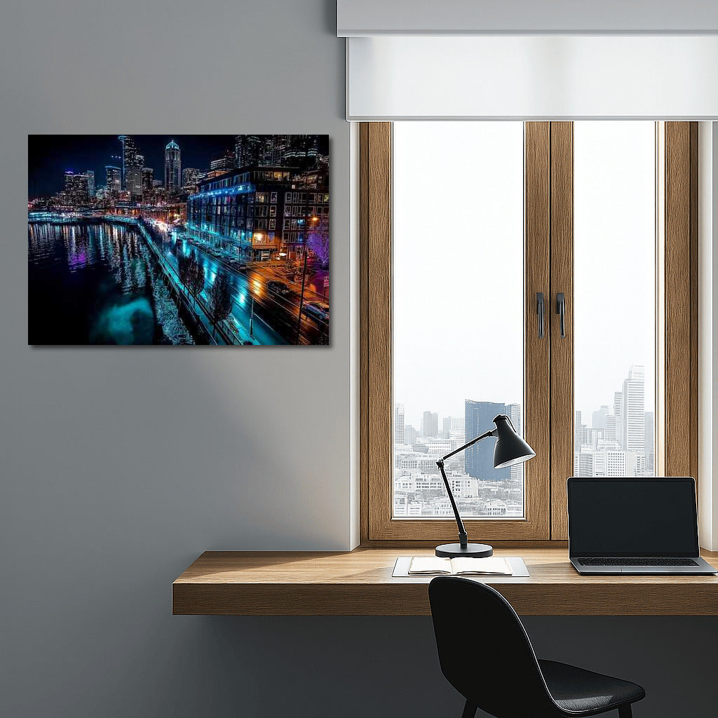 Seattle at Night: An Urban Wonder in Lights and Reflections Wall Art