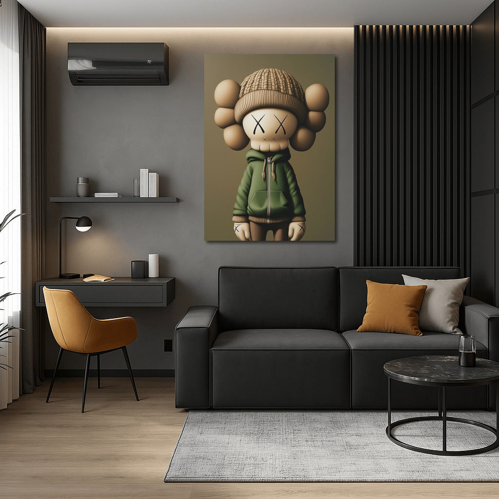 The mysterious character in the hat and hoodie in this painting creates an atmosphere of coziness and dreaminess. Modern wall art for bright interiors. See more from the collection: Mixed Wall Art