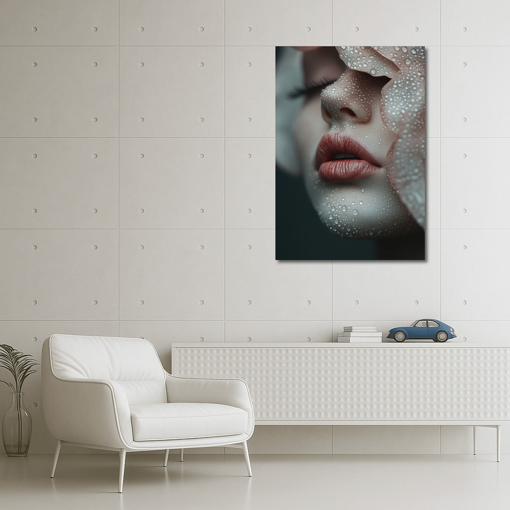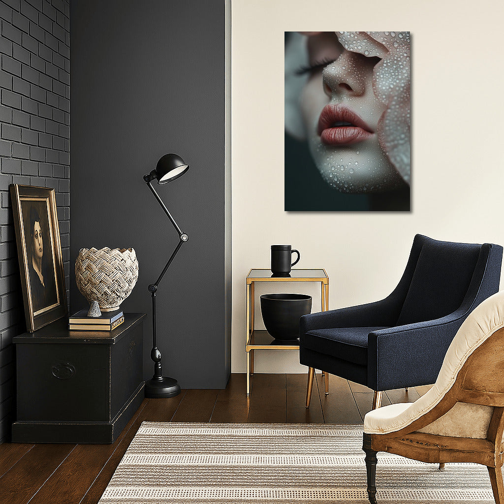 Fine wall art: mysterious features under raindrops. Ideal poster for sophisticated interiors. See more from the collection: Wall Art with Women