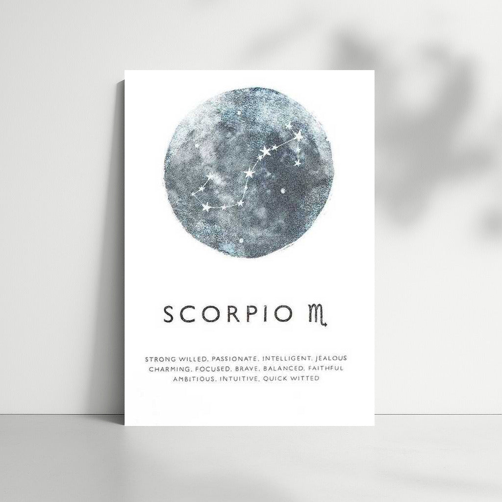 The secrets and passion of Scorpio in an exquisite poster. Wall art that fills the space with the energy of the Scorpio zodiac sign. See more from the collection: Scorpio Zodiac Sign Art