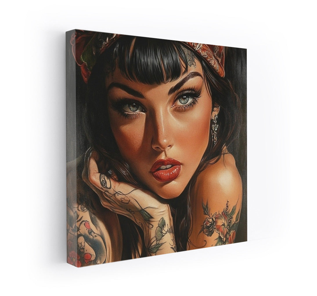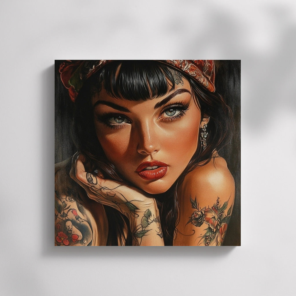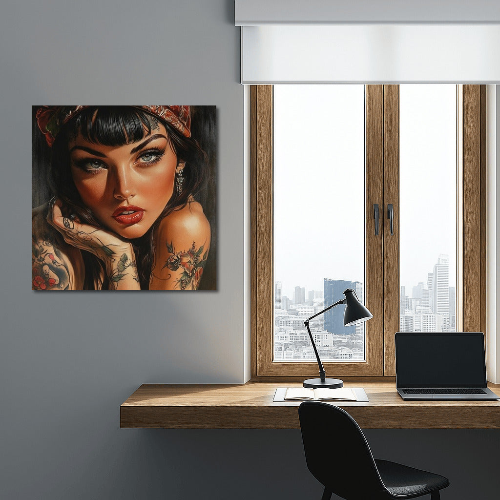 A graceful painting of a girl with expressive eyes and tattoos. This poster will become a bright accent of your wall art. See more from the collection: Wall Art with Women