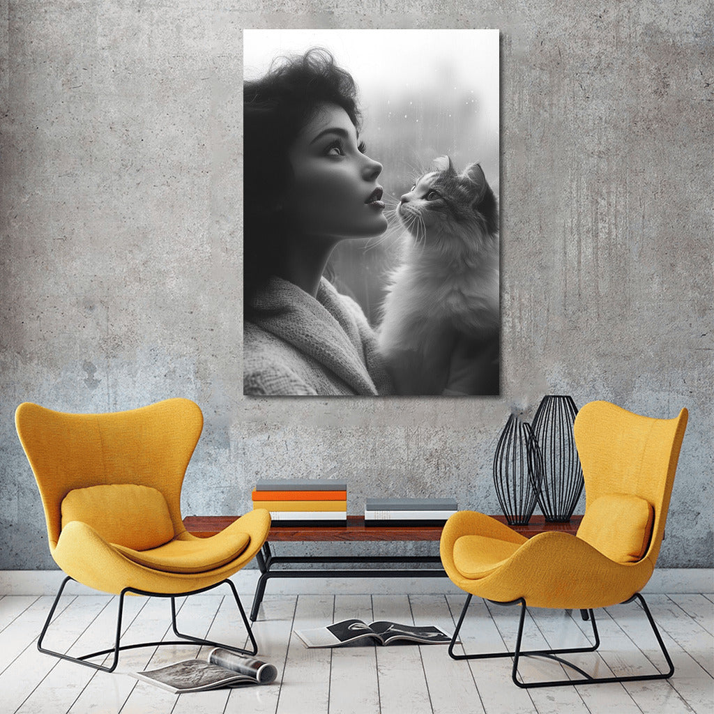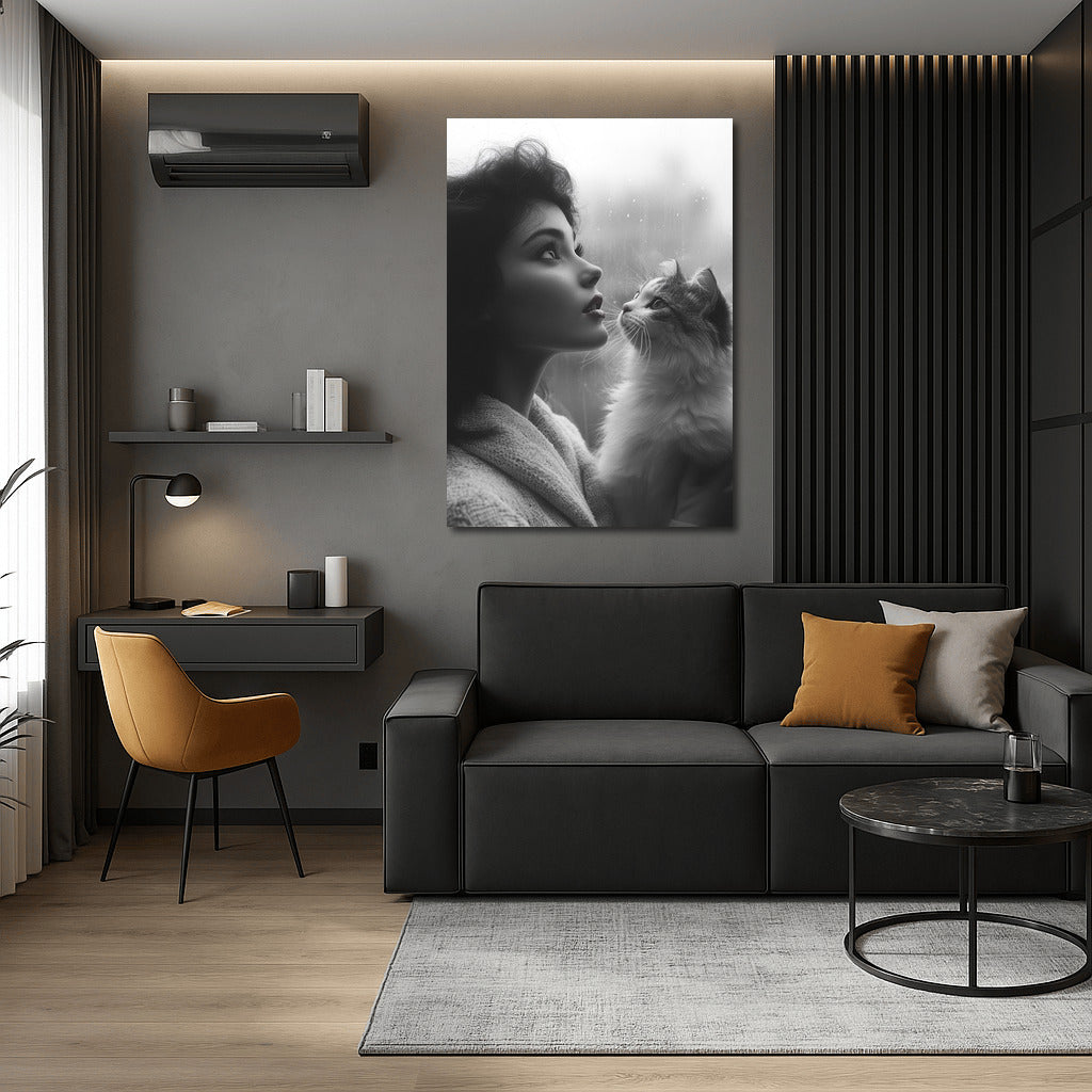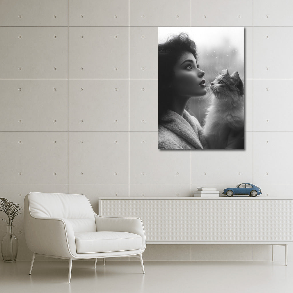 Secrets of a Rainy Evening: A Figure and a Cat Wall Art