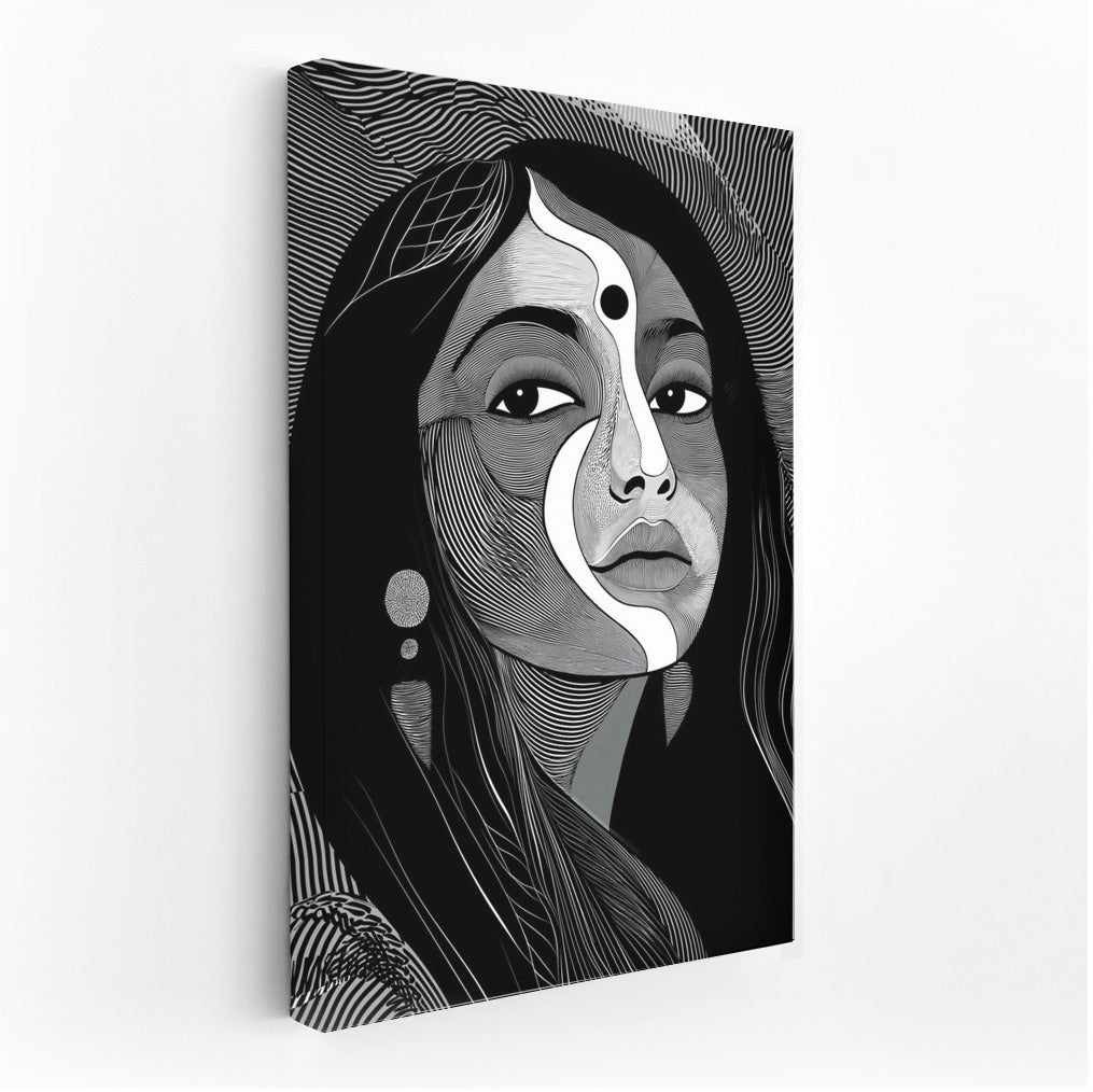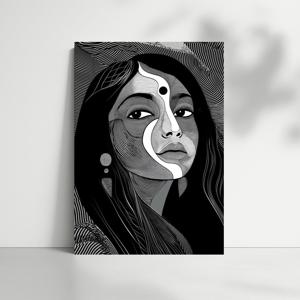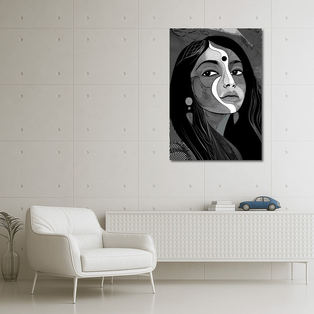 Abstract portrait captivates with lines and symbols, creating a unique wall art for your space. See more from the collection: Wall Art with Women