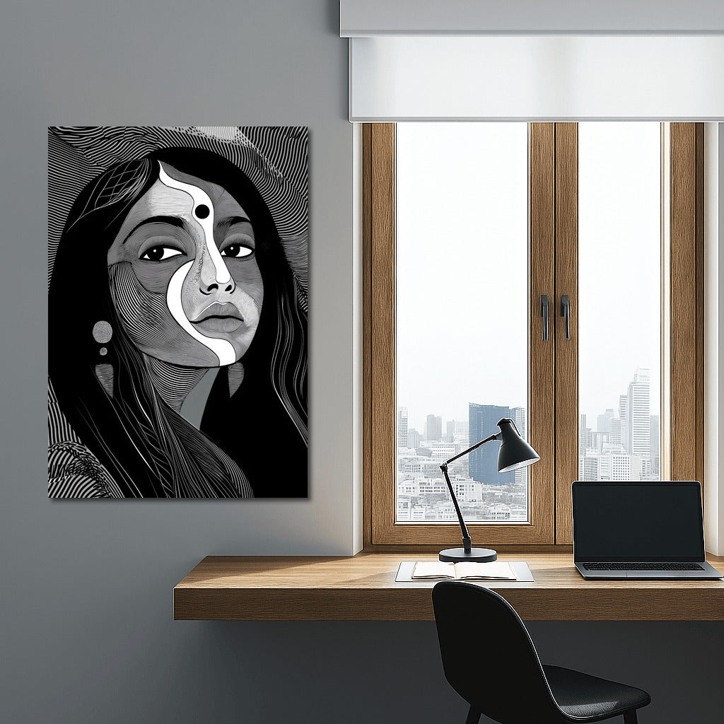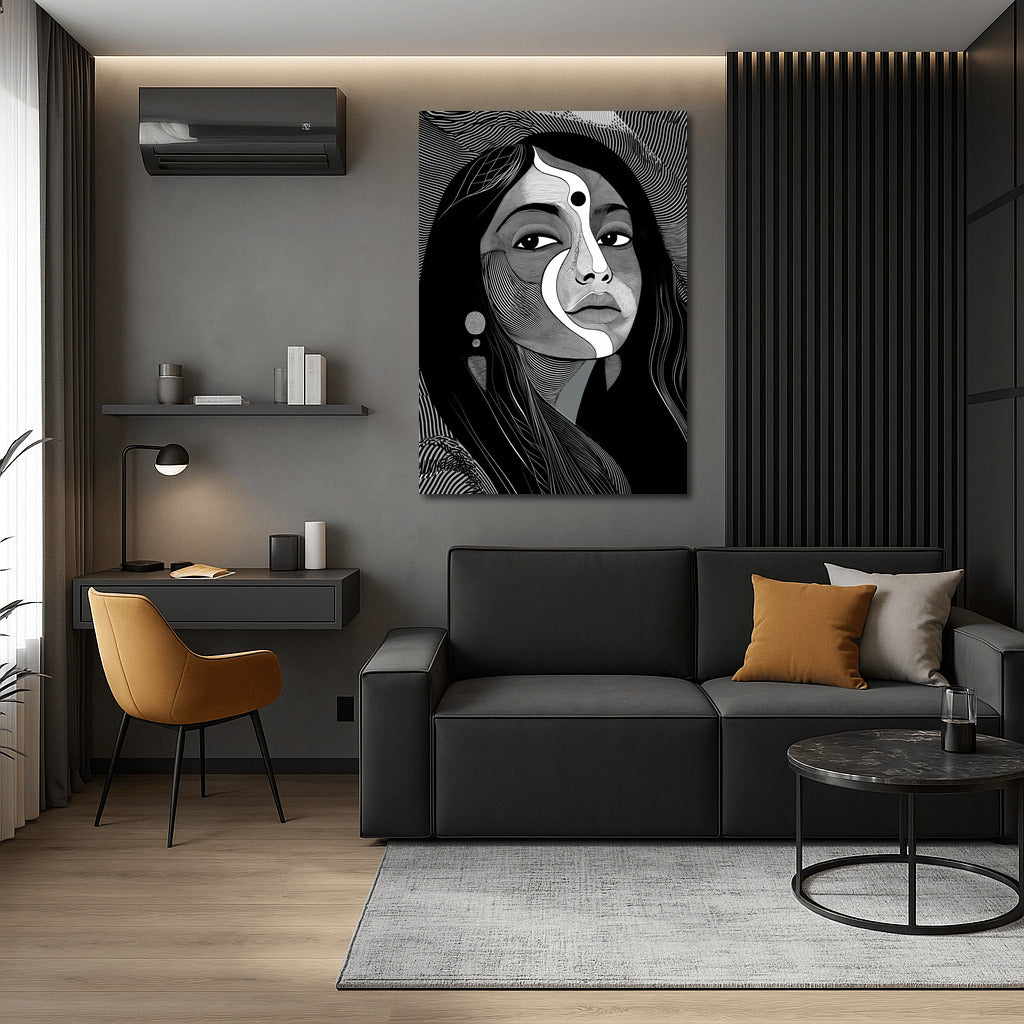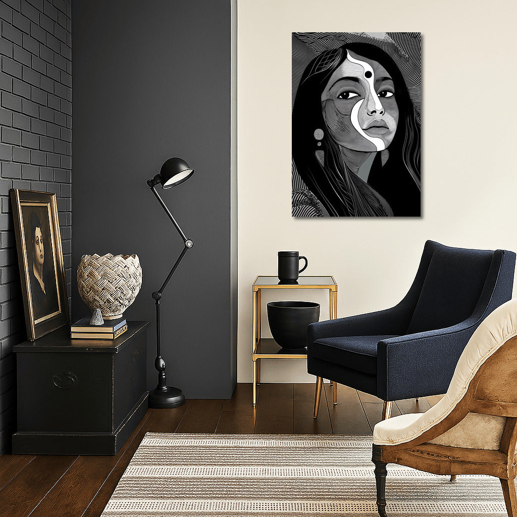 Abstract portrait captivates with lines and symbols, creating a unique wall art for your space. See more from the collection: Wall Art with Women