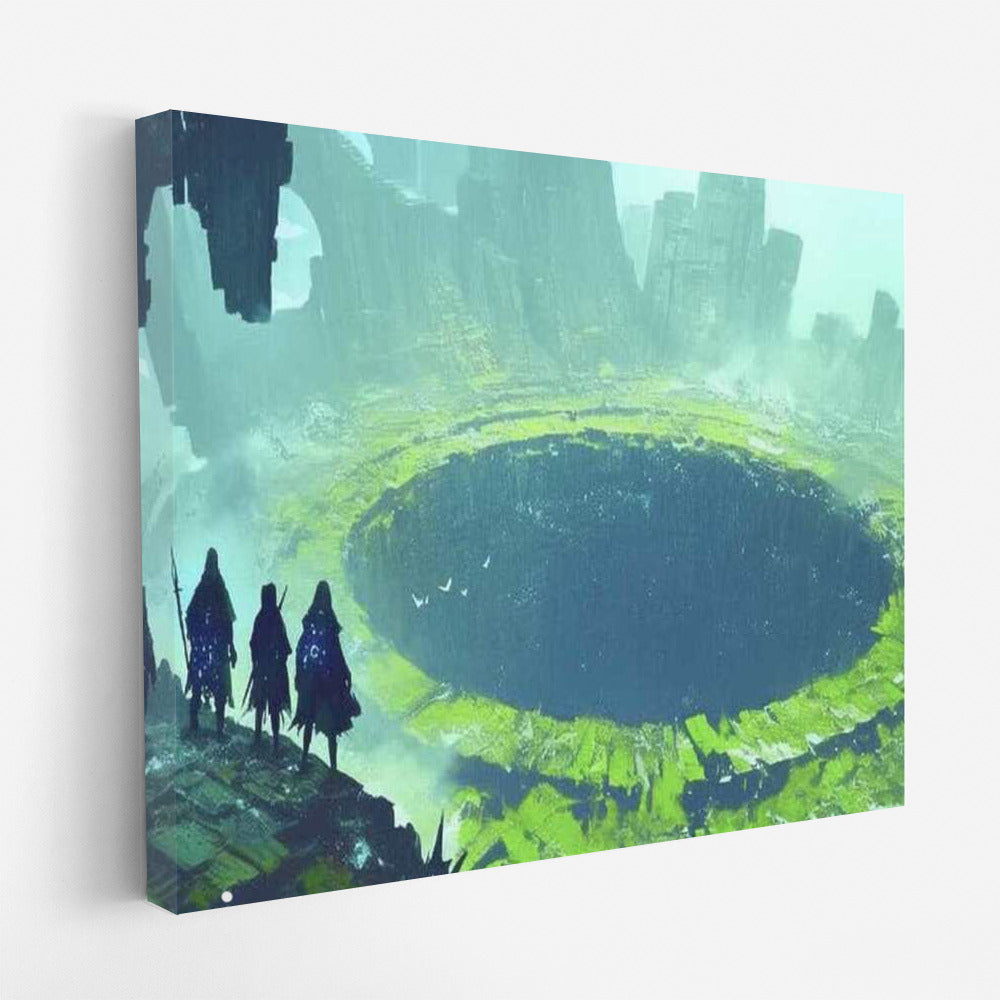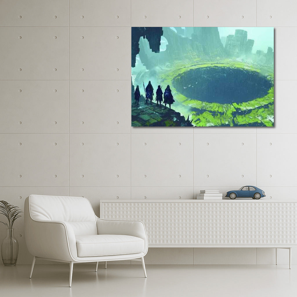 Immerse yourself in a mysterious journey with the Fantasy Travelers 4 poster, where mysterious wanderers explore an ancient world. See more from the collection: Fantasy Art