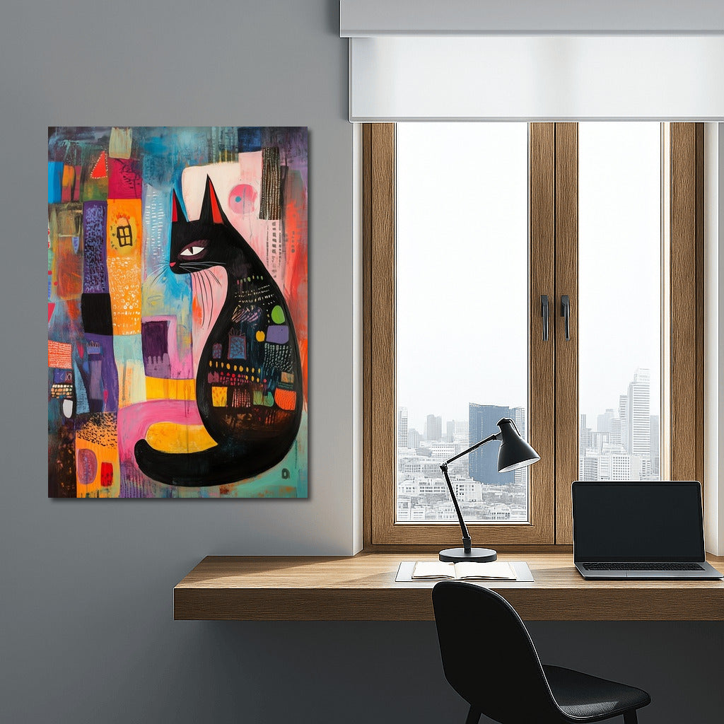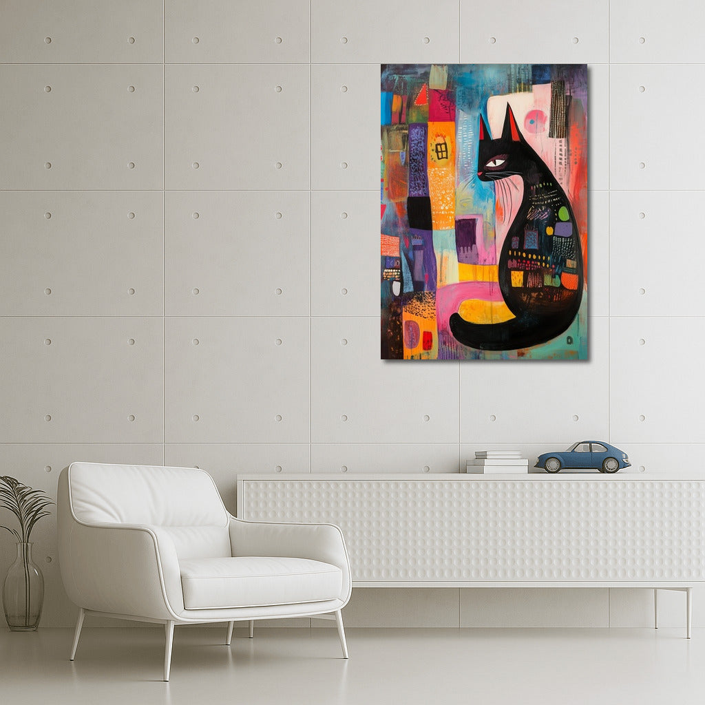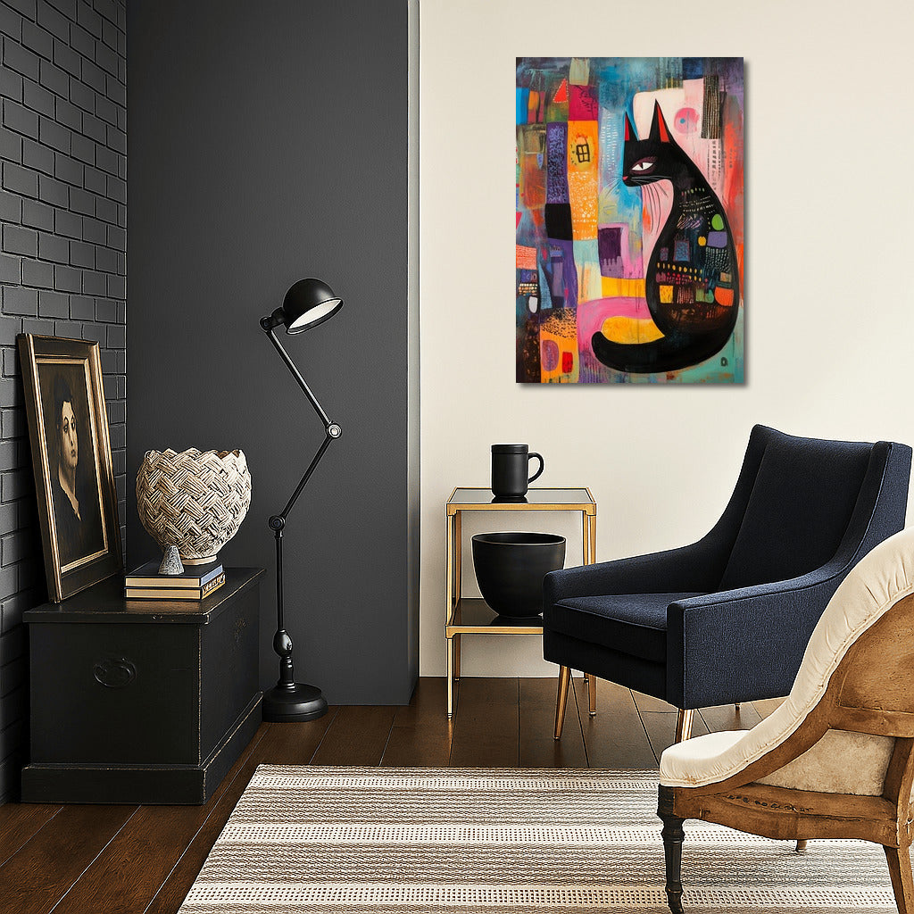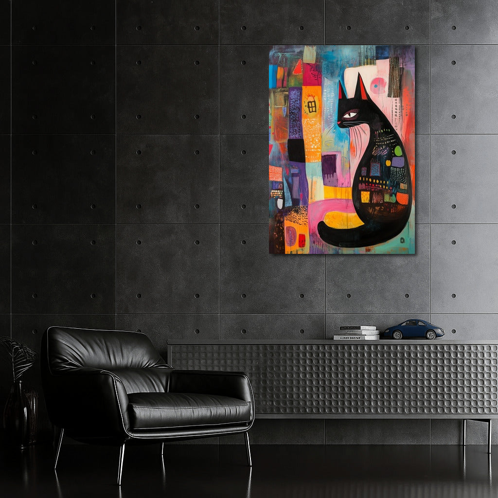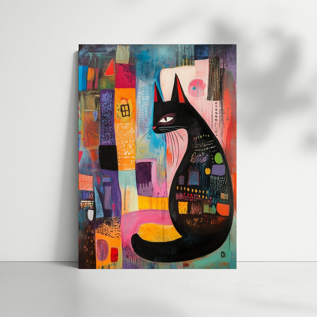 An abstract painting with a mysterious cat in bright colors will inspire and decorate any space. The perfect poster for the soul! See more from the collection: Animals Art