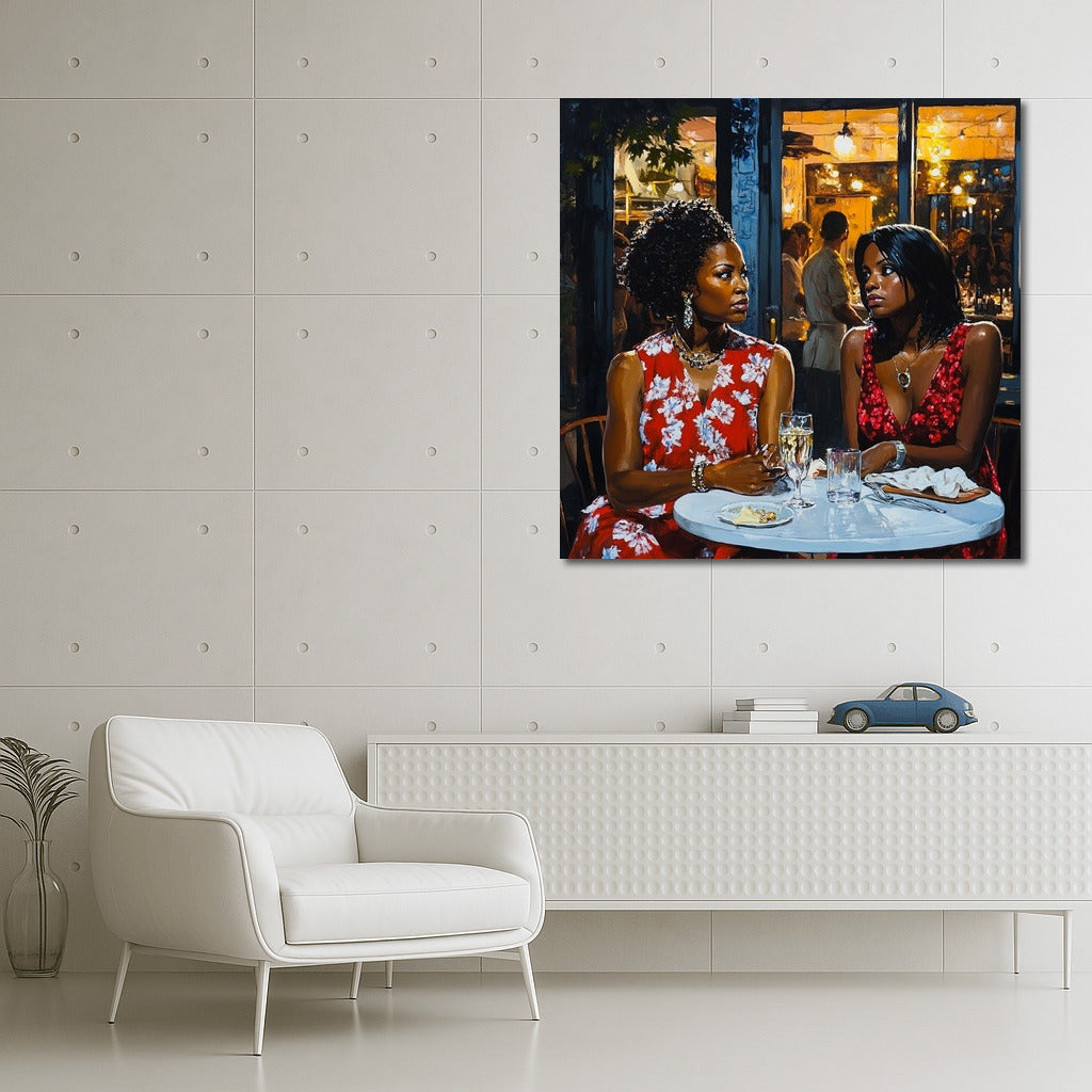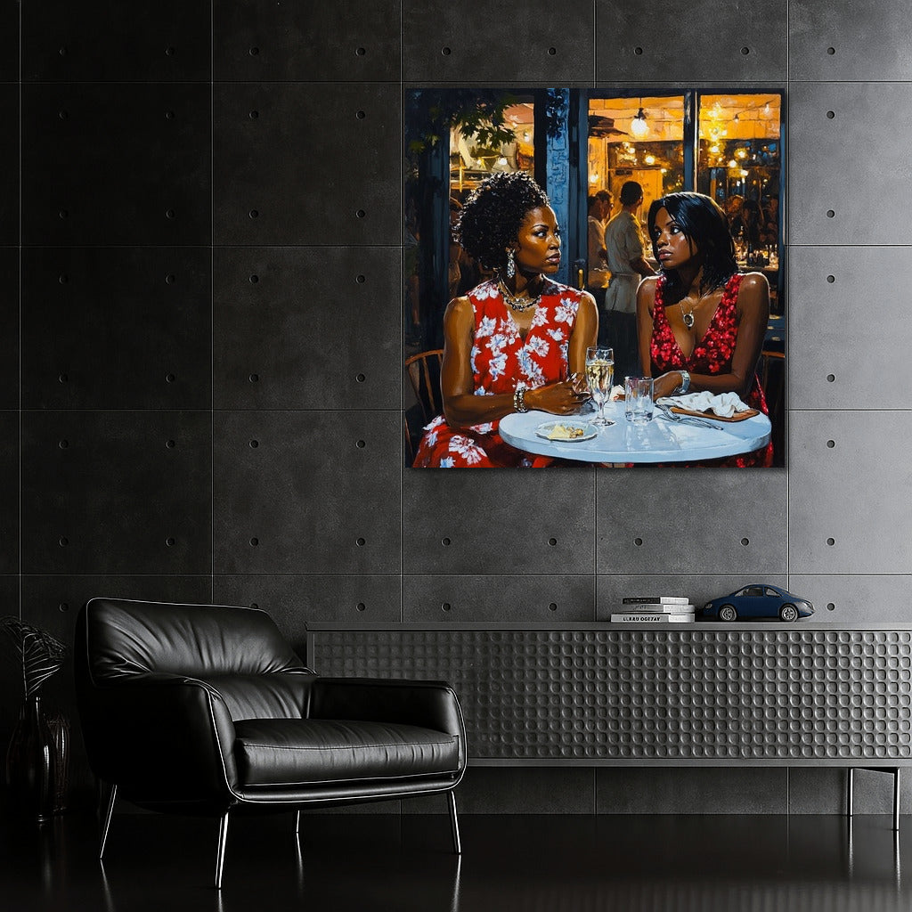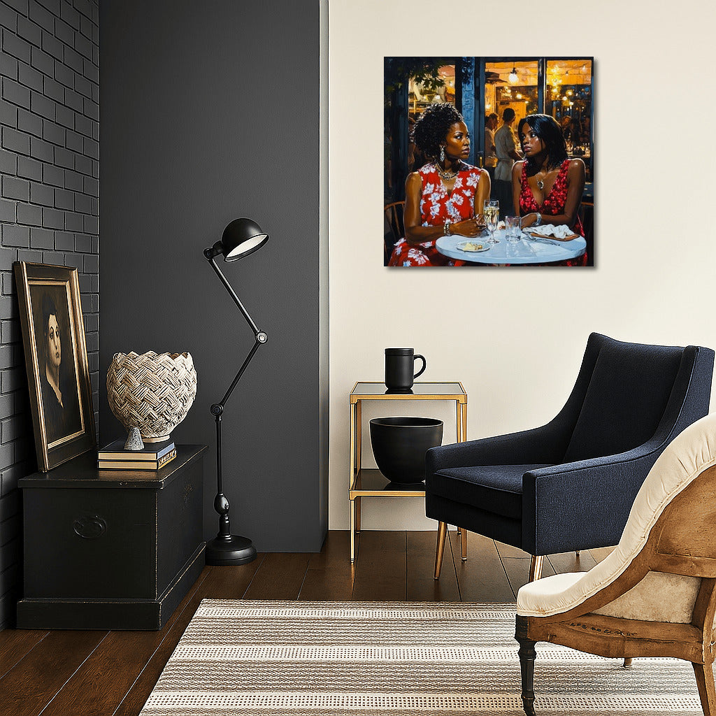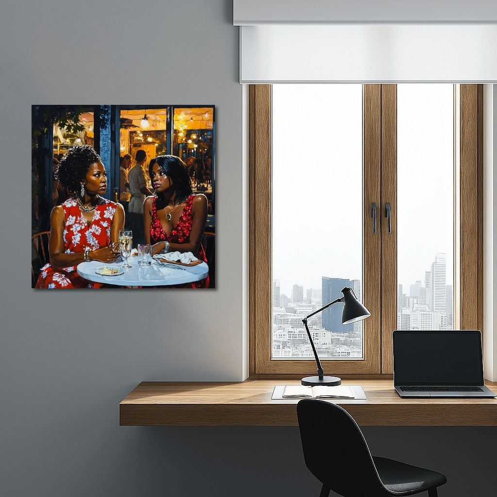 Fine wall art: evening conversations over a glass in the warmth of a cozy cafe. The atmosphere of coziness and mystery in every stroke. See more from the collection: Wall Art with Women