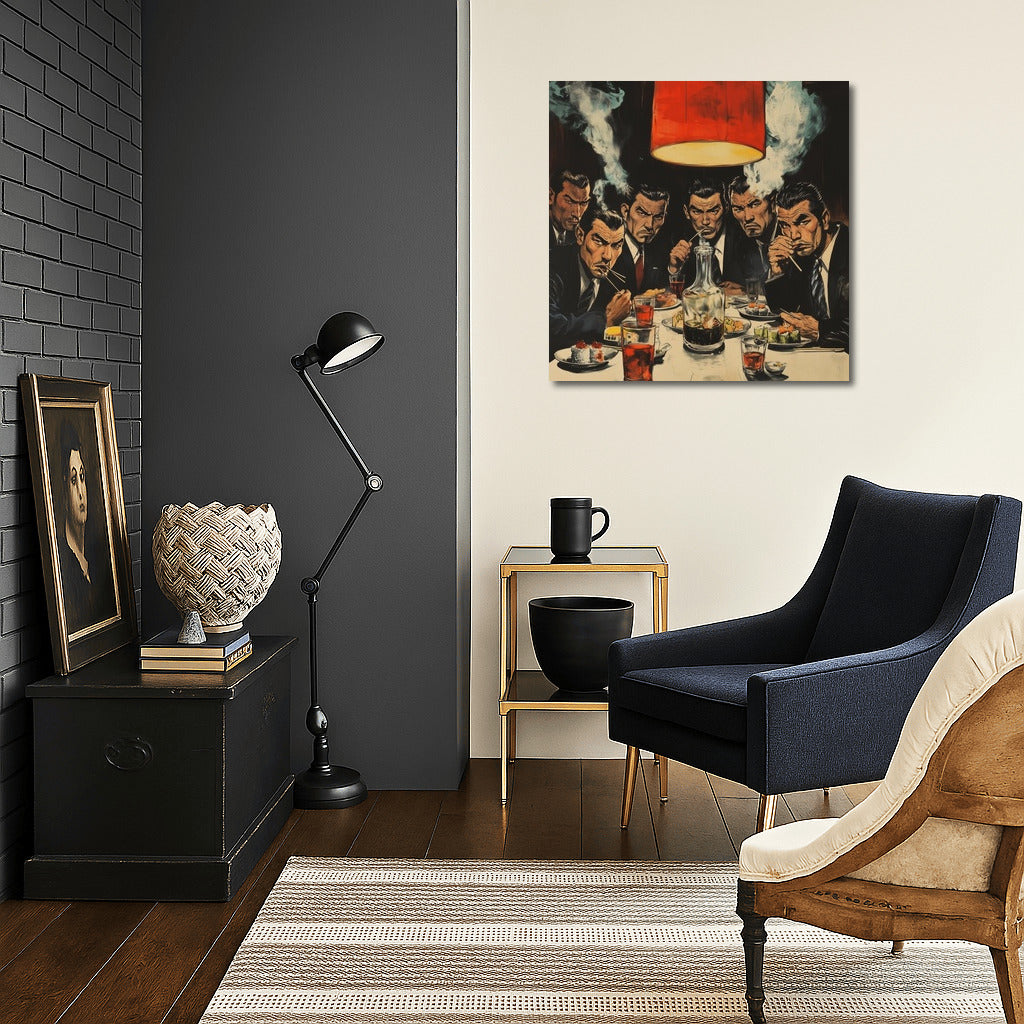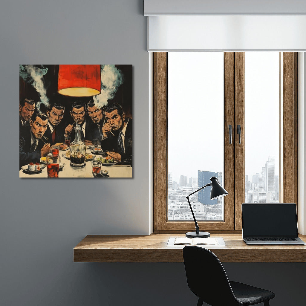Mysterious wall art: a smoky evening, tense glances at the table. A dynamic poster for a stylish interior. See more from the collection: Man cave Art