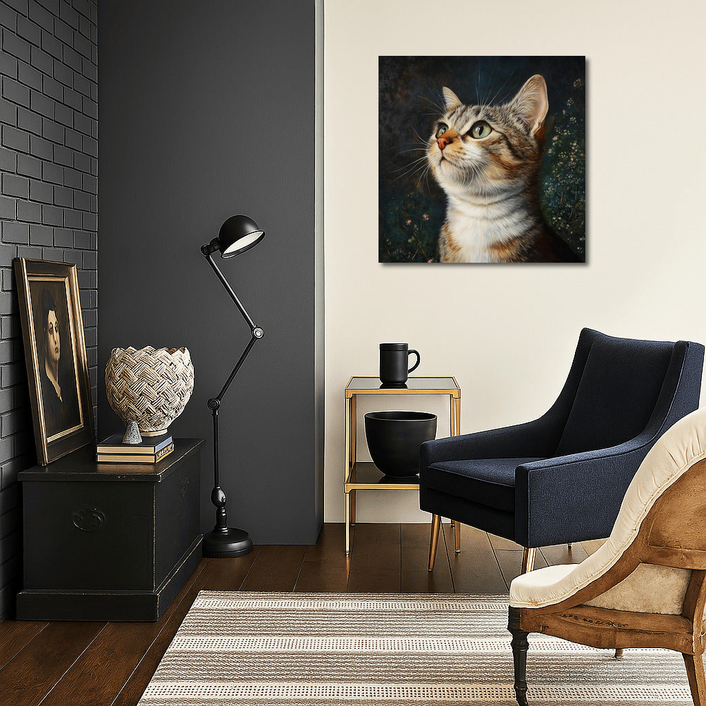 Adorable cat in exquisite wall art. The poster will add coziness and an atmosphere of mystery to your interior. See more from the collection: Animals Art