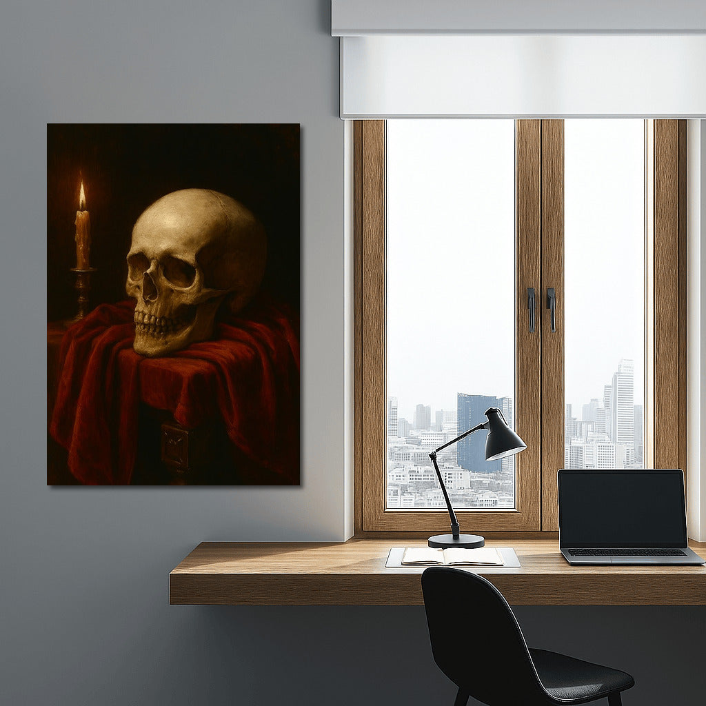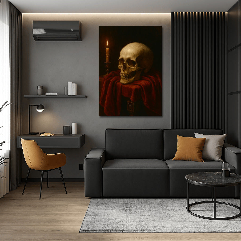 The skull and candle create an atmosphere of mystery and depth. This painting in the style of Dark Academia will become an accent of your interior. See more from the collection: Dark Academia Art