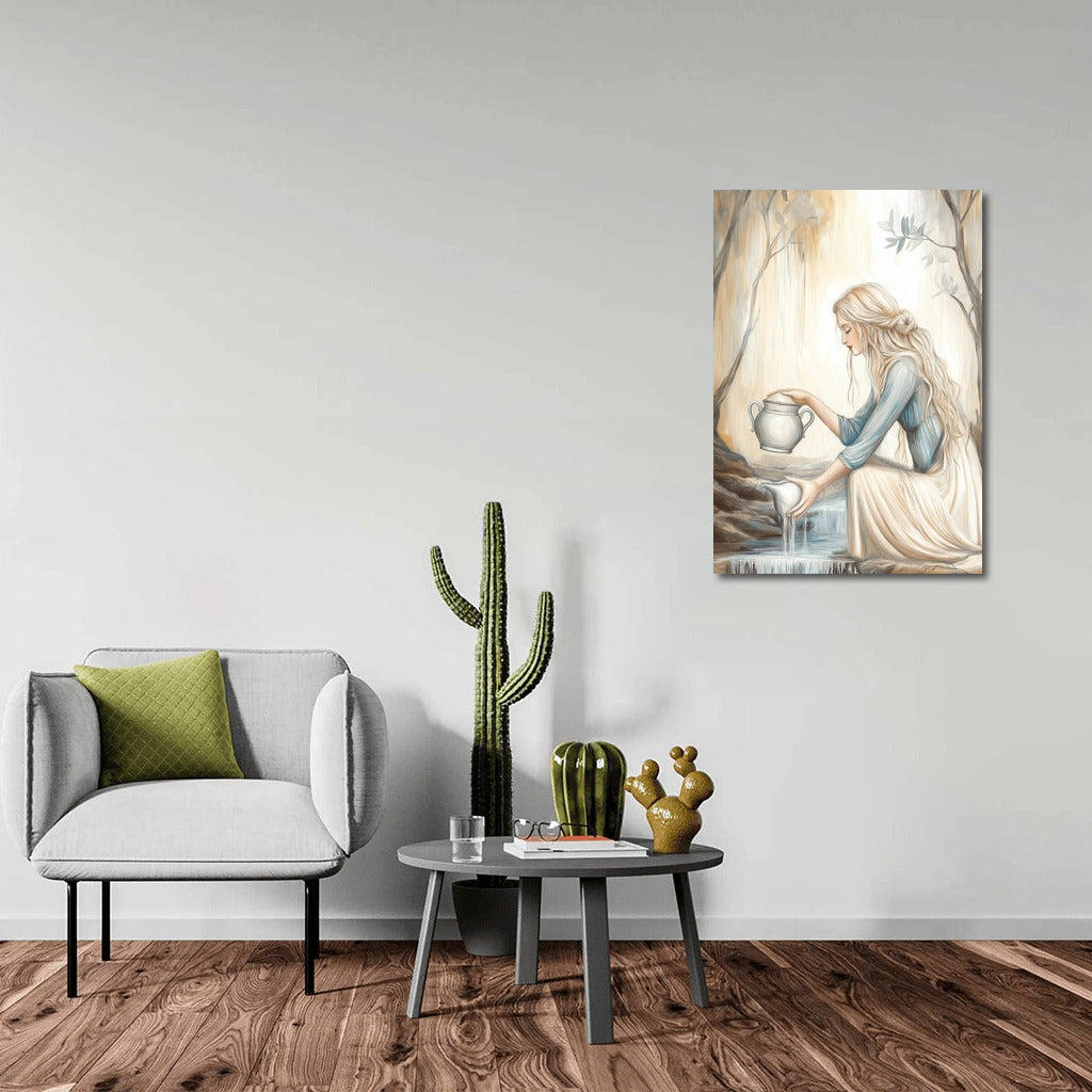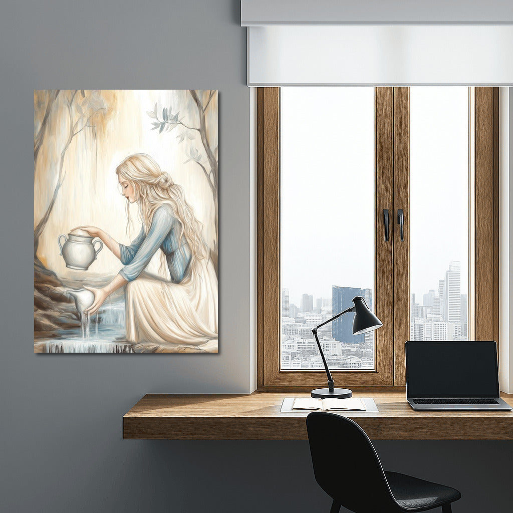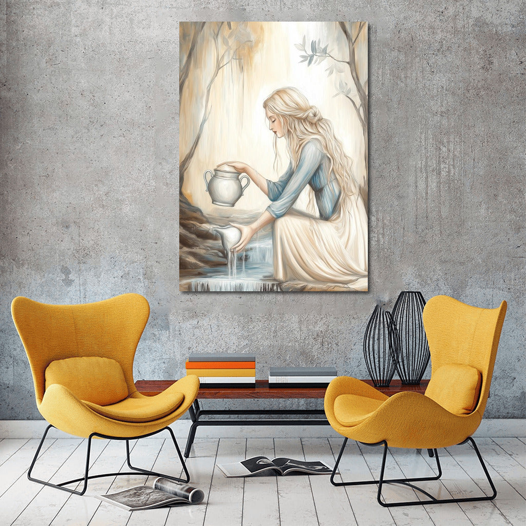Poster painting of a girl by a stream. Magical wall art that embodies the harmony of nature and peace. See more from the collection: Mixed Wall Art
