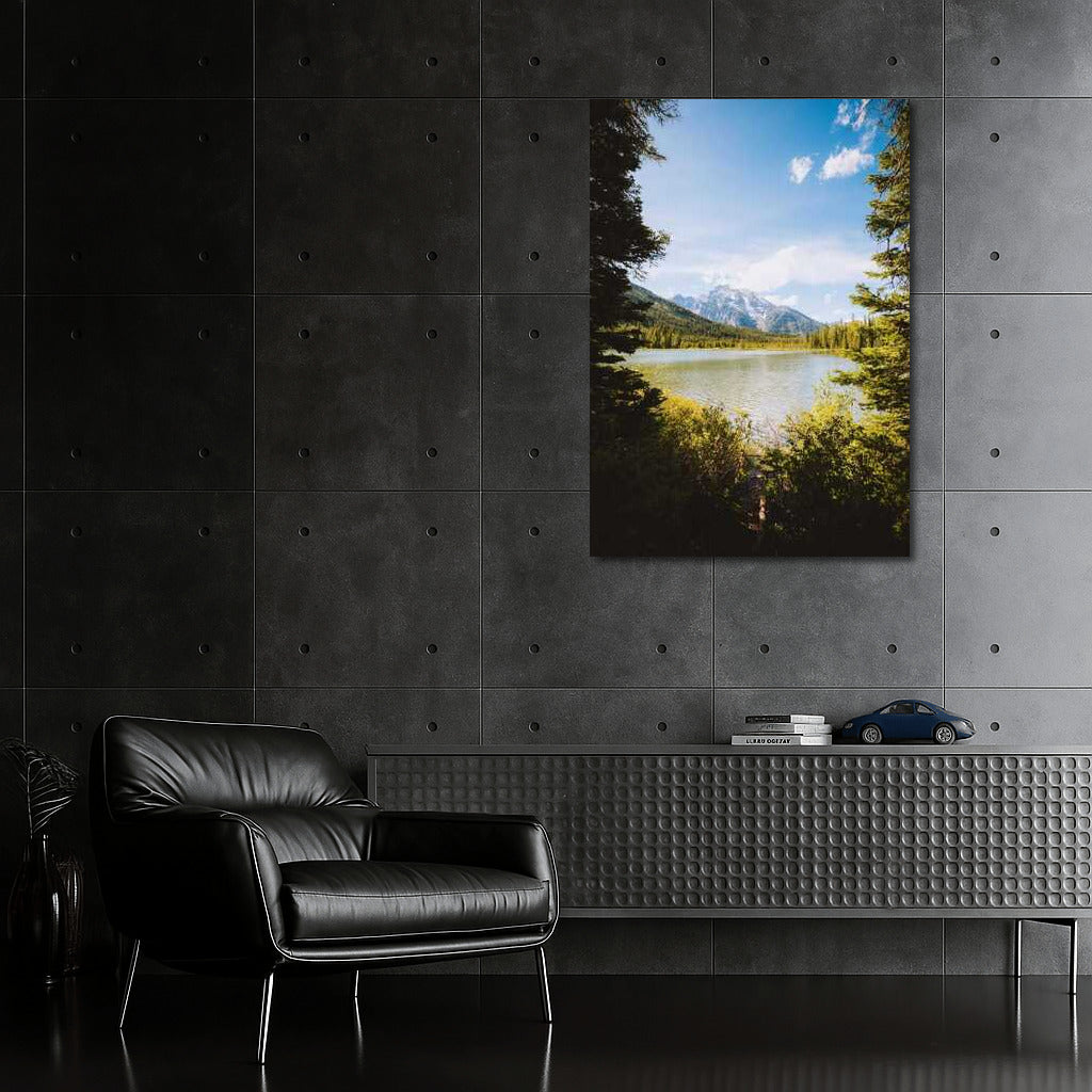 Immerse yourself in the serenity of the American wilderness with this poster featuring Wyoming mountains, a crystal lake and endless open spaces. See more from the collection: Country Art