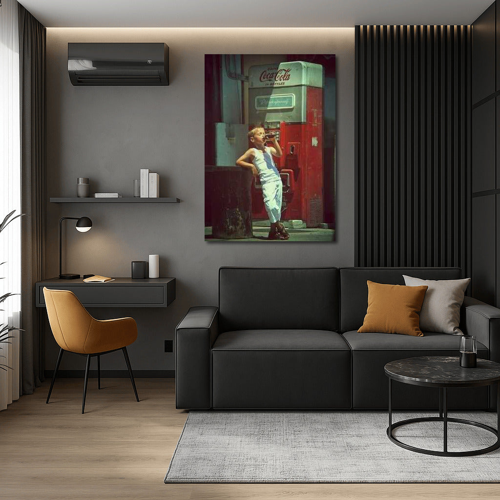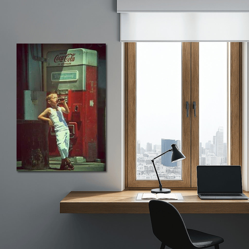 Dive into the retro 90s: the poster recreates serene moments with a drink at the machine. Wall art for lovers of nostalgia. See more from the collection: Retro 90s & Nostalgia Art