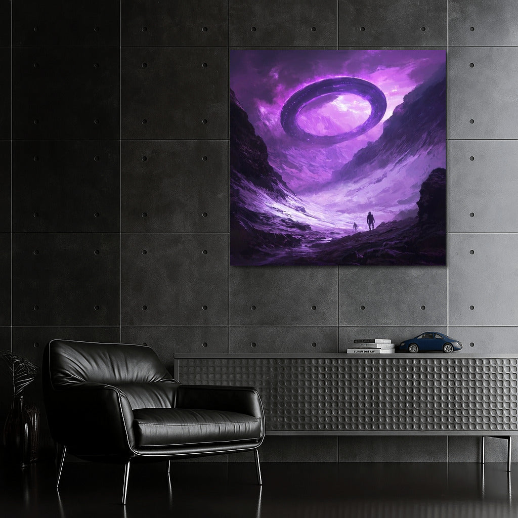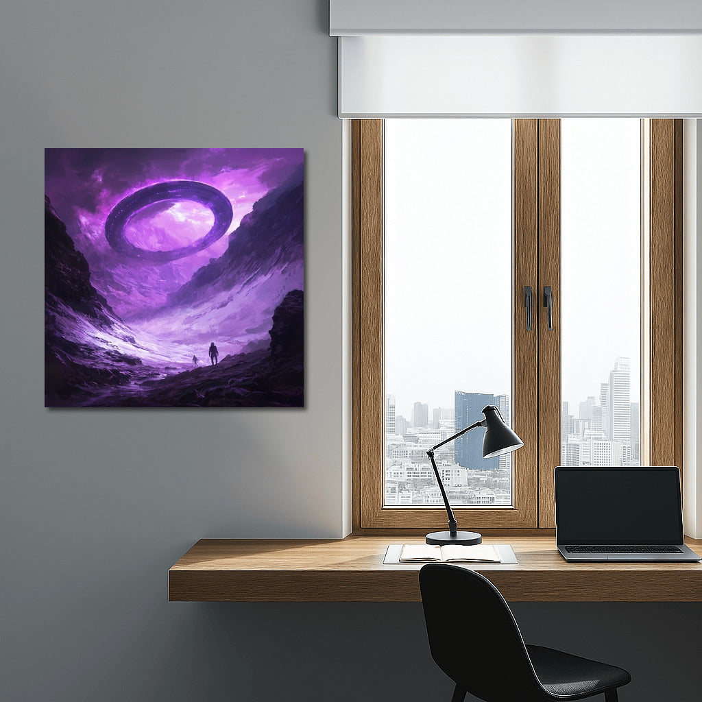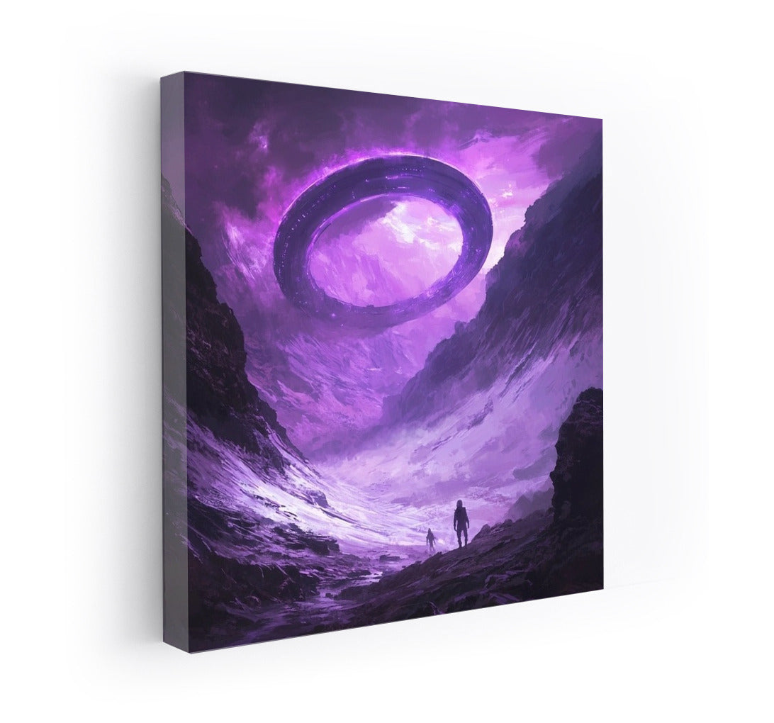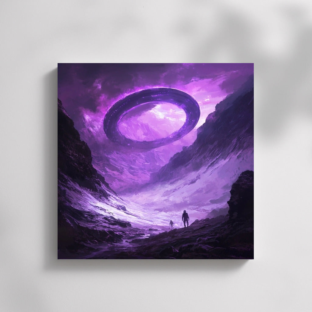 Mysterious figures against a mystical alien landscape. Space wall art for future dreamers. See more from the collection: Fantasy Art