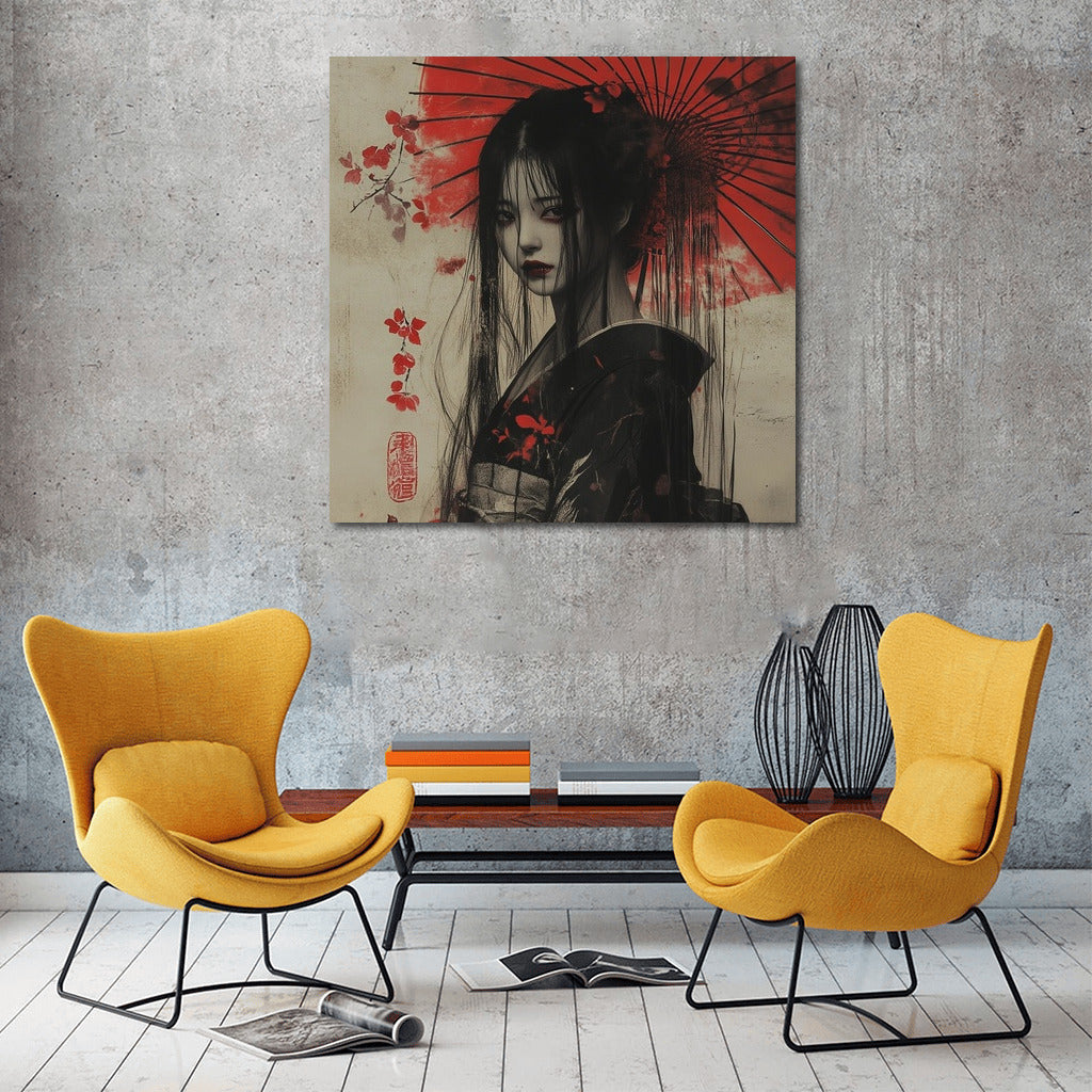 A graceful painting with a mysterious image inspired by Japanese aesthetics. A perfect poster for your wall art. See more from the collection: Country Art