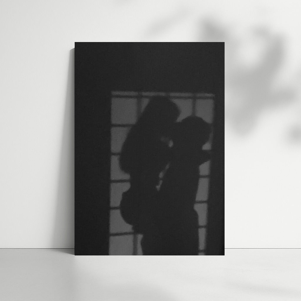 Silhouettes intertwined in a dance of shadows create intrigue and passion. This poster is your window to sensual wall art. See more from the collection: Erotic Art