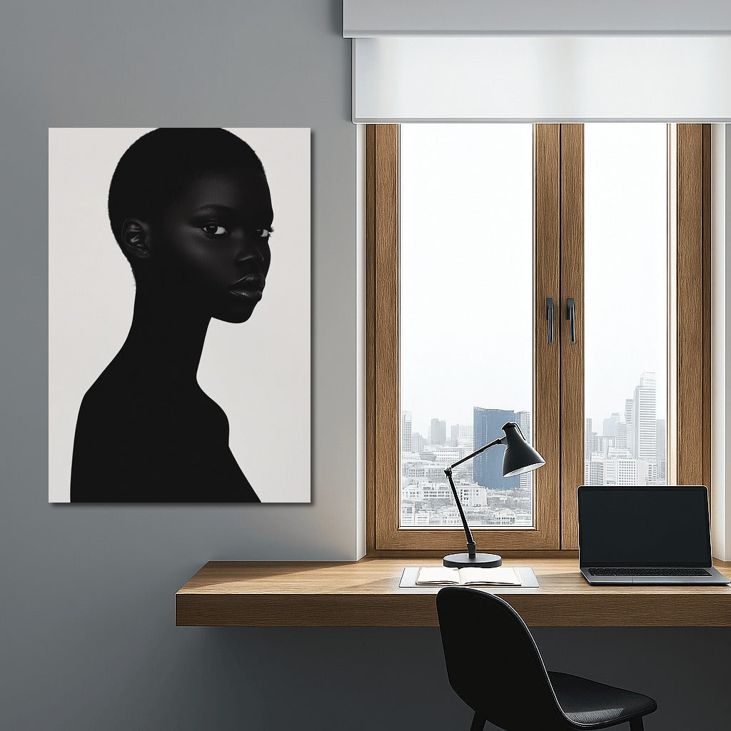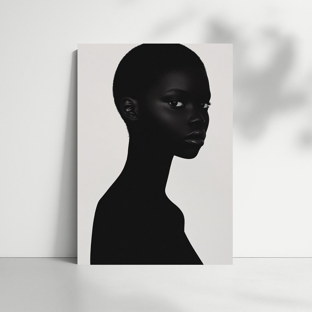 Dive into the mysteries with this painting: the silhouette of a girl on the poster will add depth and elegance to your wall art. See more from the collection: Black and White Art