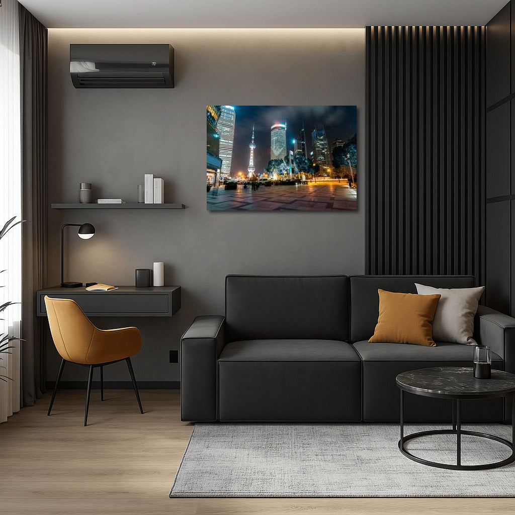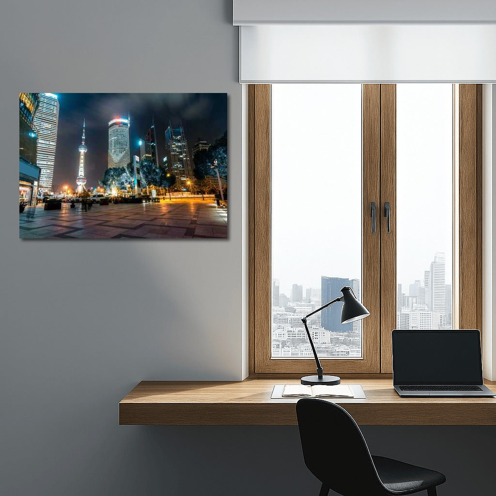 Shanghai night comes alive on the poster! Dynamic skyscrapers and twinkling lights create an atmosphere of an urban dream. See more from the collection: Cityscapes & Skylines Art