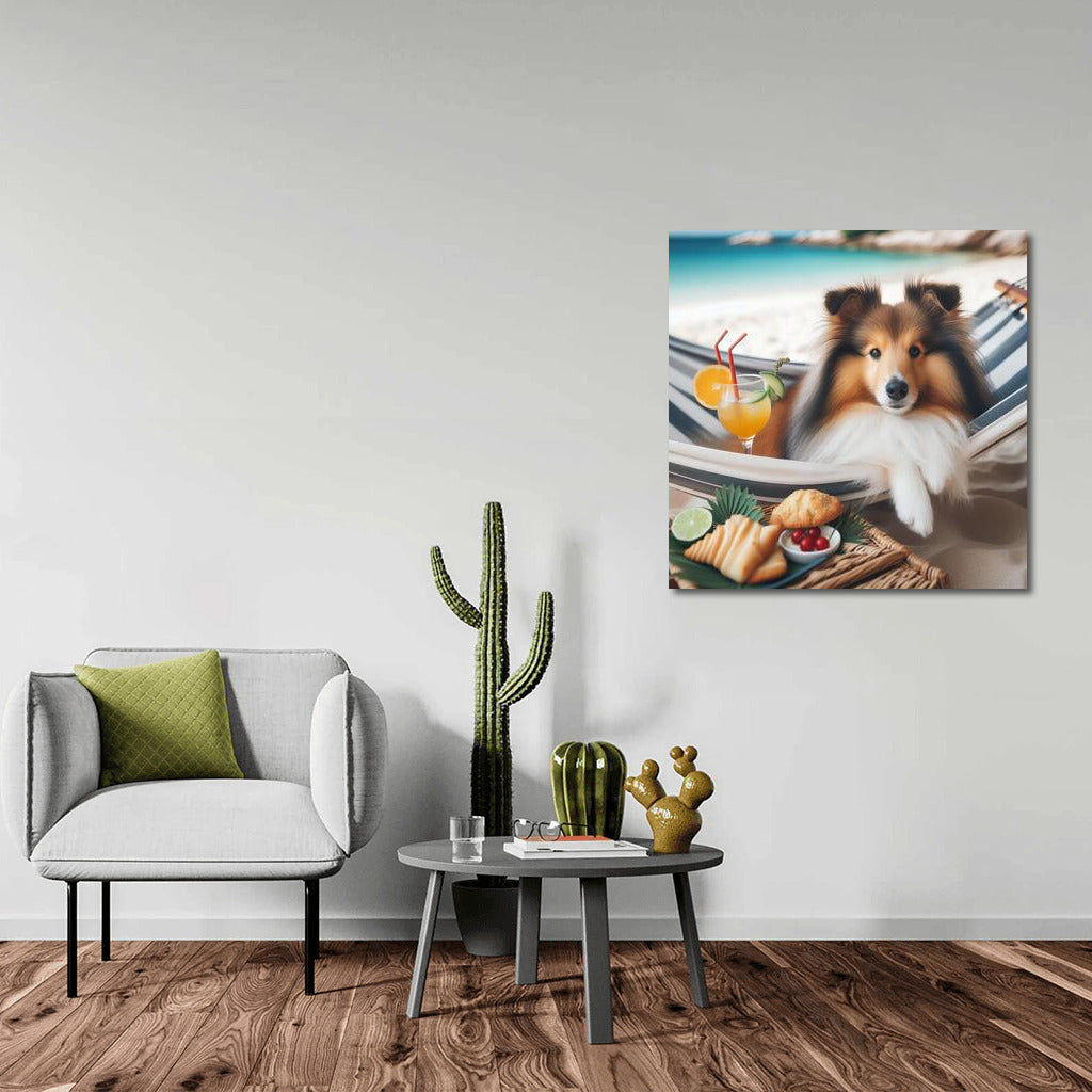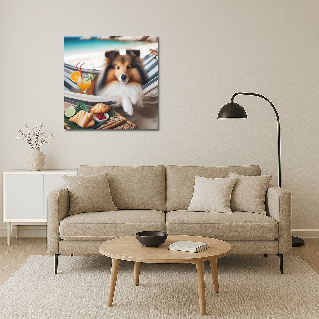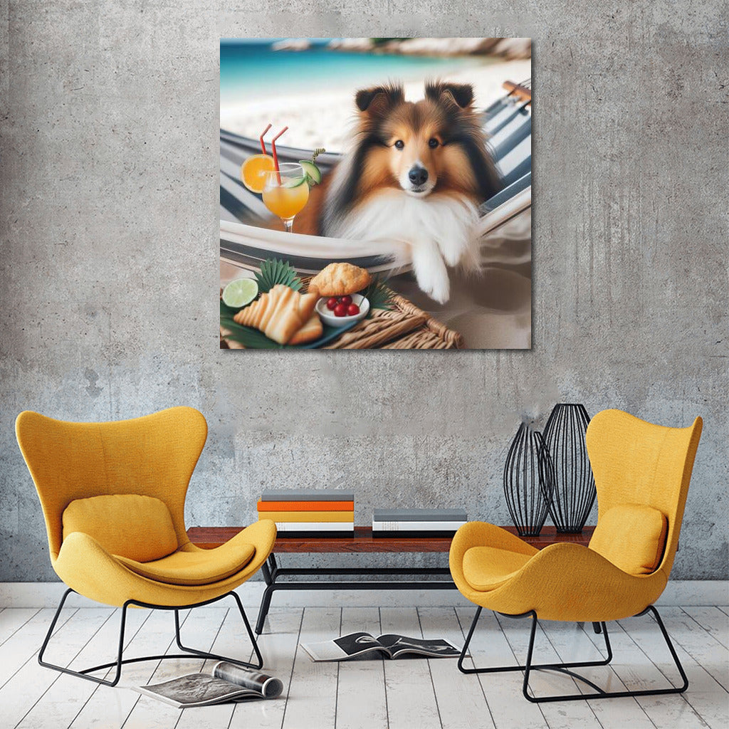 Sheltie in a Hammock: Beach Relaxation with a Cocktail Wall Art