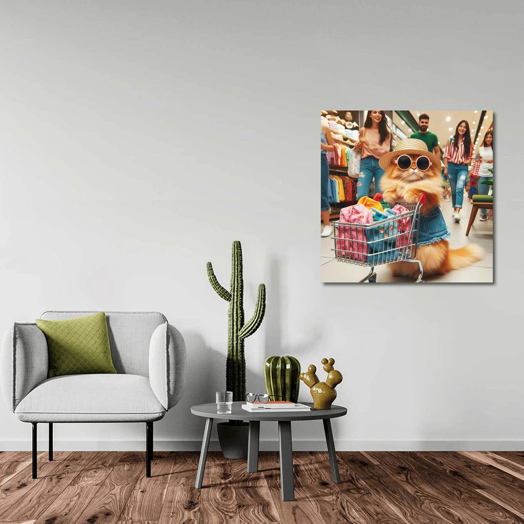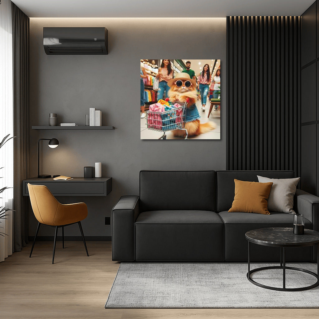 Shopping in Chic: Stylish Cat at the Mall Wall Art