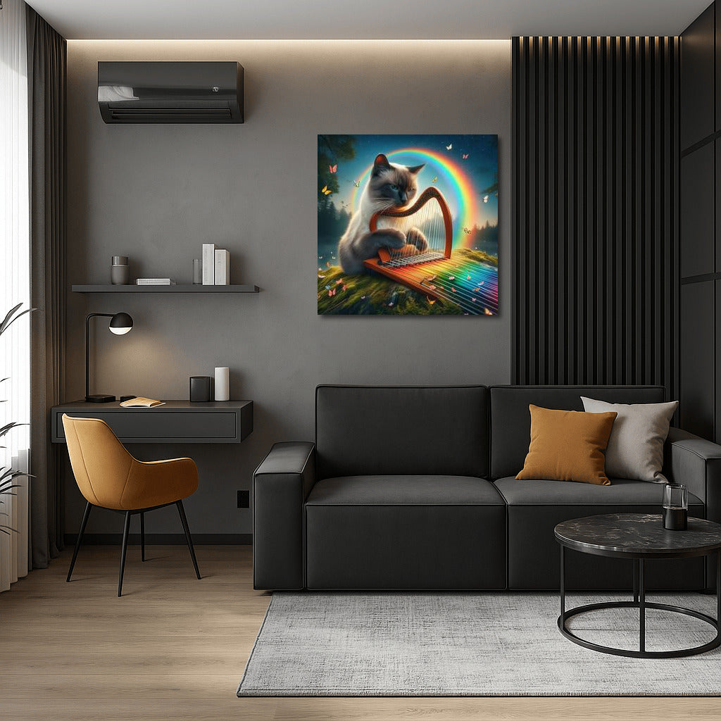 Siamese Cat and the Magic of the Rainbow Harp: Nature Comes to Life Wall Art