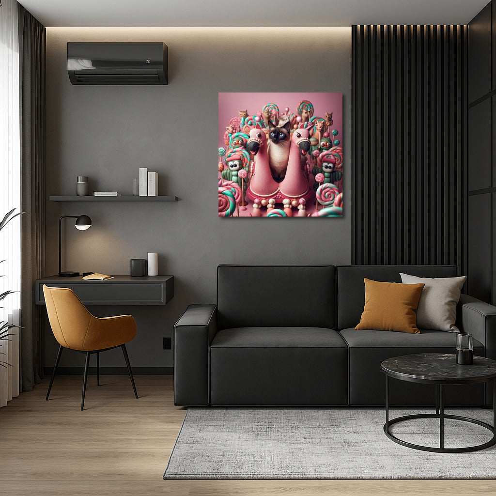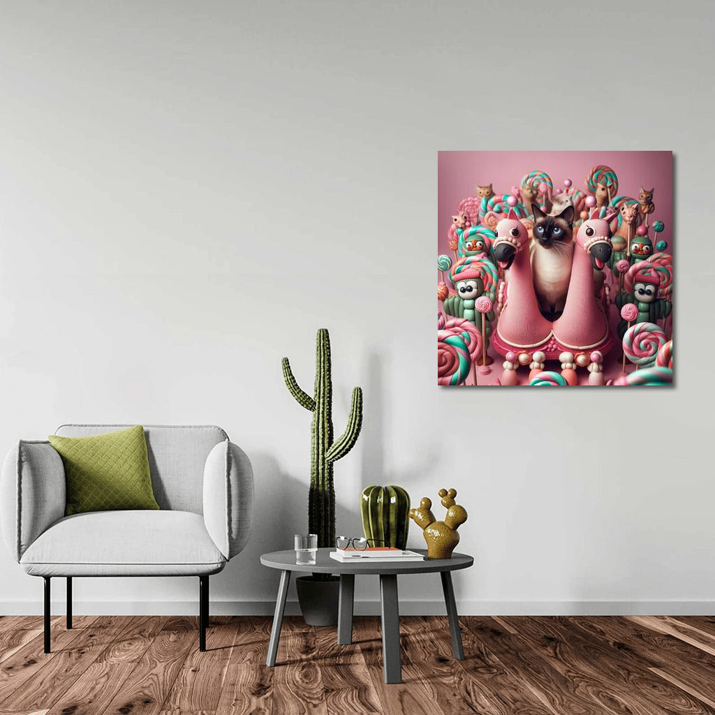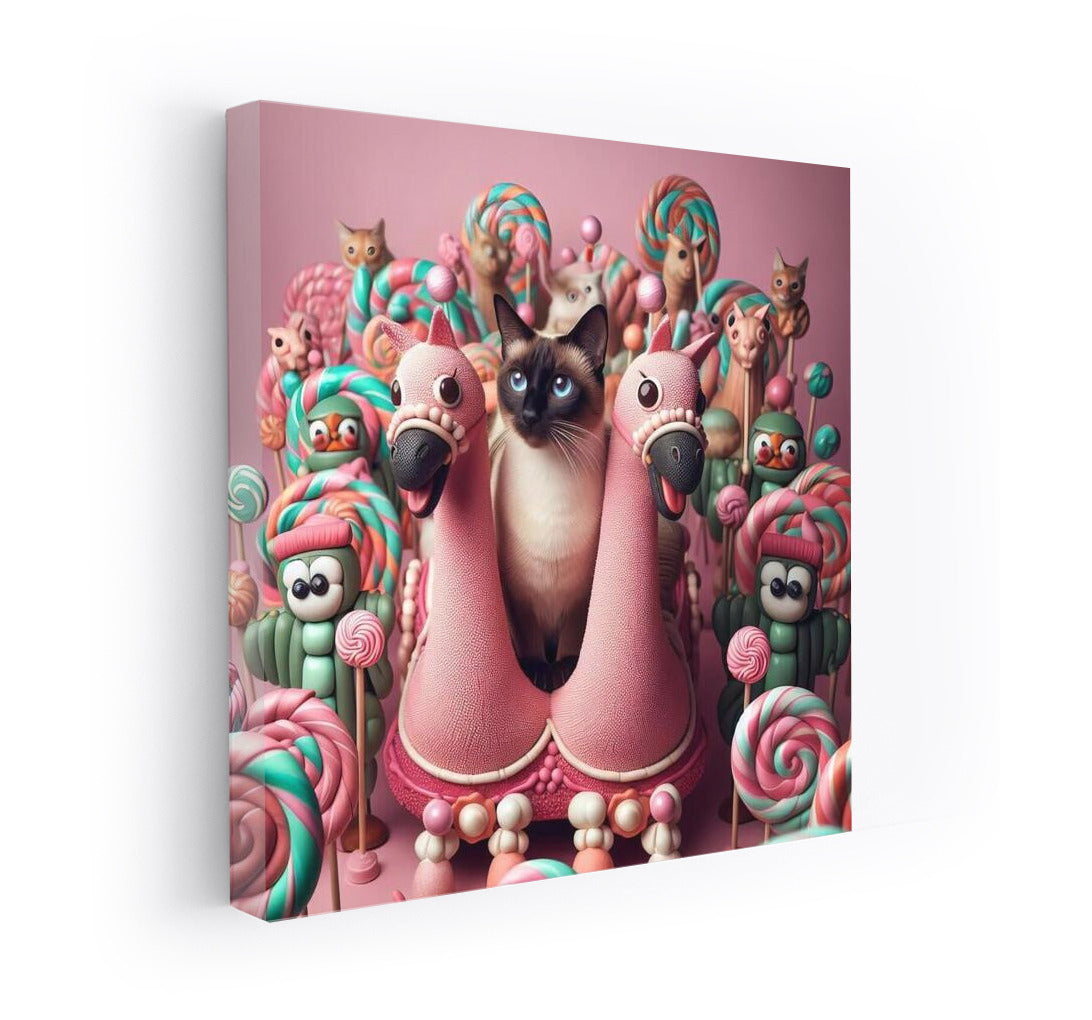 Poster: Siamese Cat on Candy Parade Surrounded by Chocolate and Sweets. Magical Wall Art for Those with a Sweet Tooth! See more from the collection: Animals Art