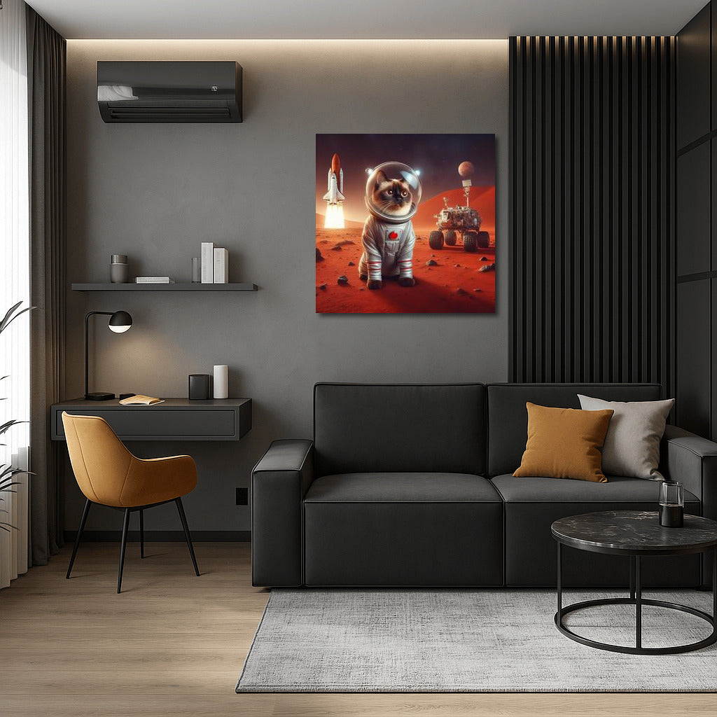 Siamese Cat on Mars: Space Adventure with a Rocket Wall Art