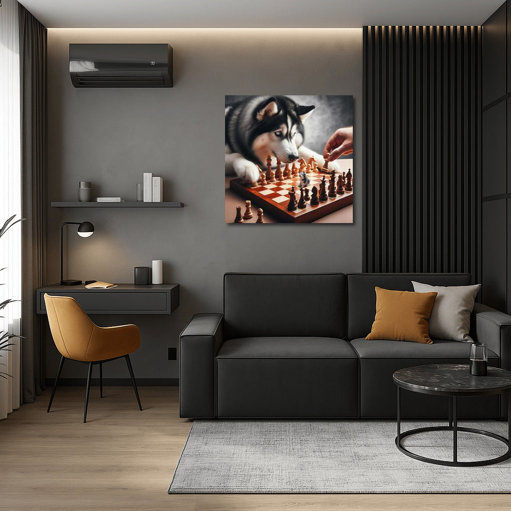 Siberian Husky Chess Duel: Live Pieces in the Game Wall Art