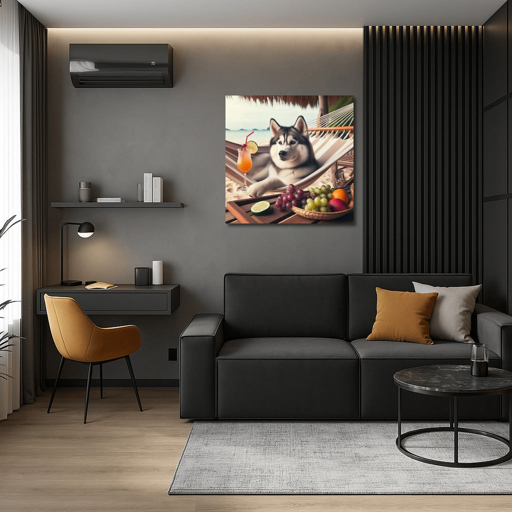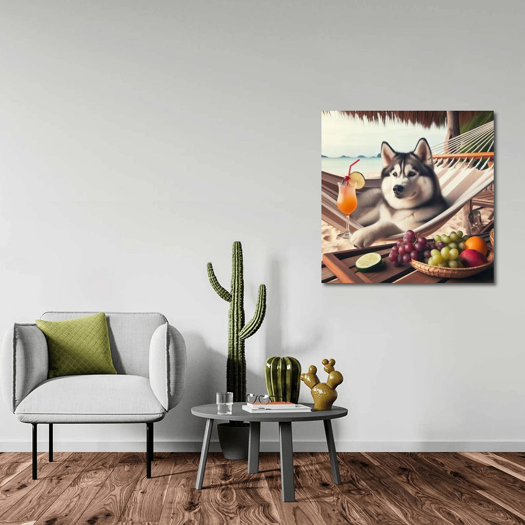 Siberian Husky in a Hammock: Beach Relaxation with a Cocktail Wall Art