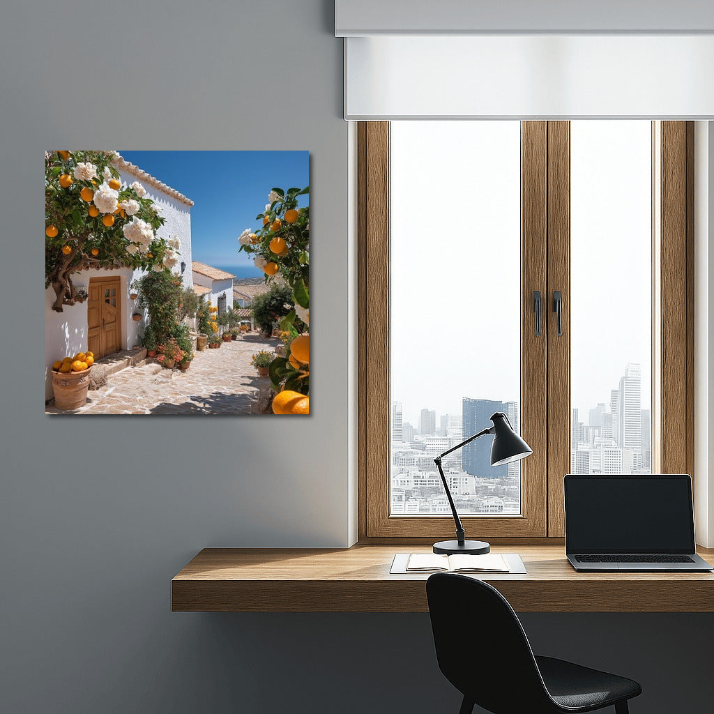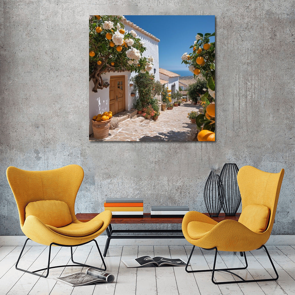 A cozy street of a Mediterranean village comes to life on a poster. An atmosphere of sun and calm for your wall art. See more from the collection: Mixed Wall Art