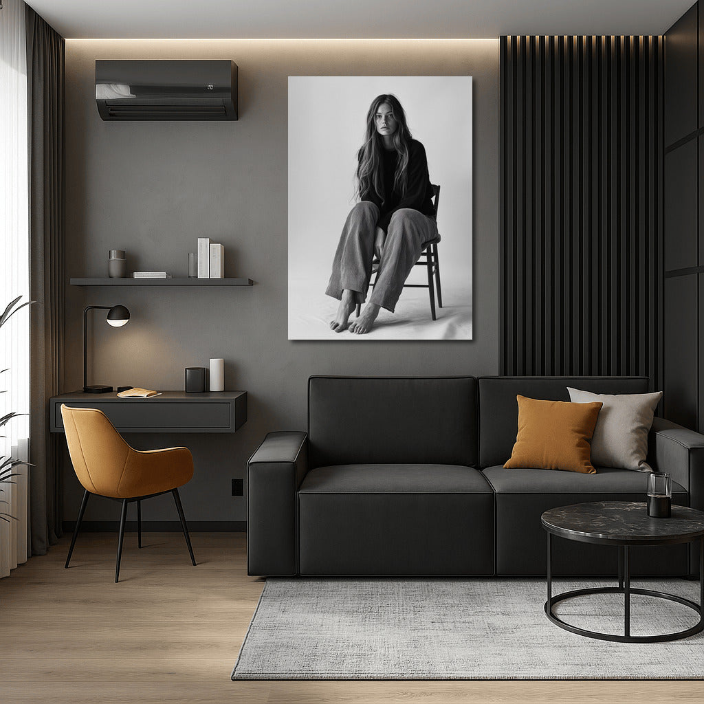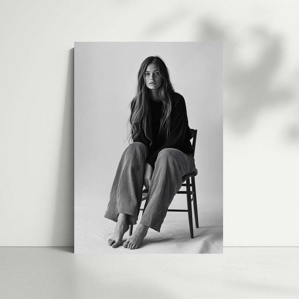Elegant painting: girl in a calm pose. The embodiment of minimalism and emotion for your wall art. See more from the collection: Wall Art with Women