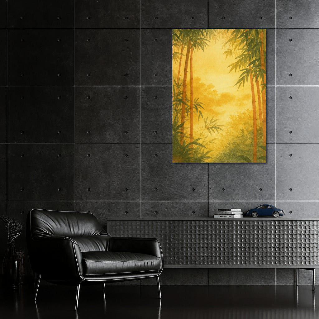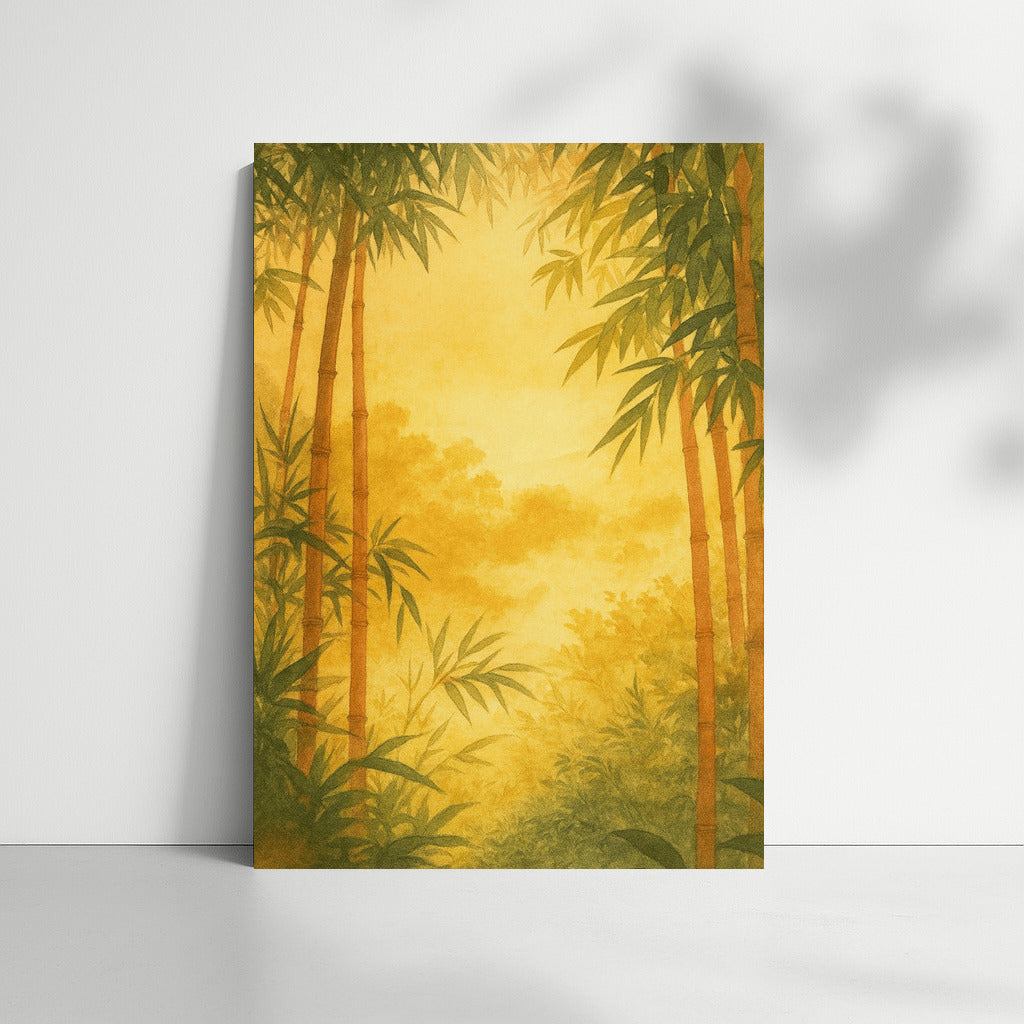 Immerse yourself in the silence of a Japanese forest with this painting. Bamboo trunks and soft shades will bring peace to your home. See more from the collection: Japanese Minimal Calm Art