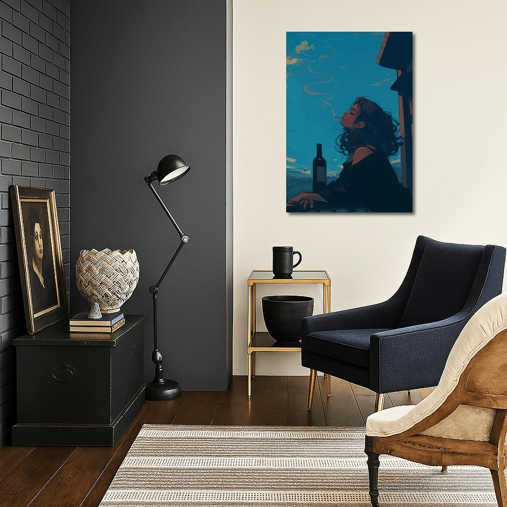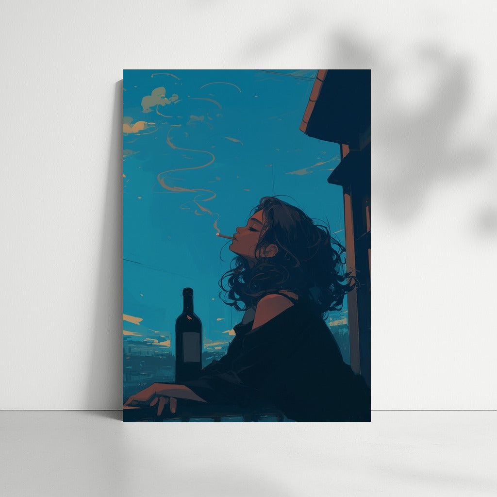 A mysterious figure against a sunset backdrop. This poster will add a dreamy atmosphere to your space. Wall art full of mood. See more from the collection: Anime & Manga genres Art