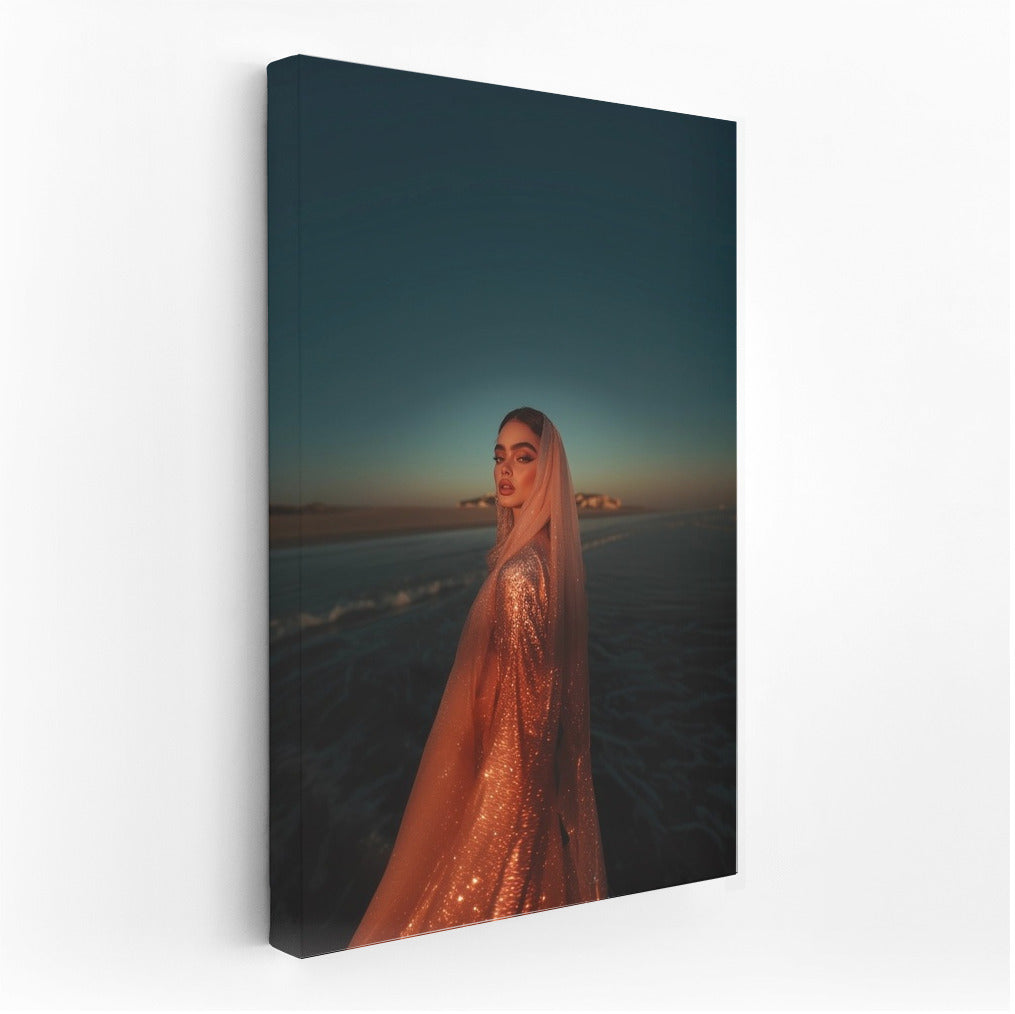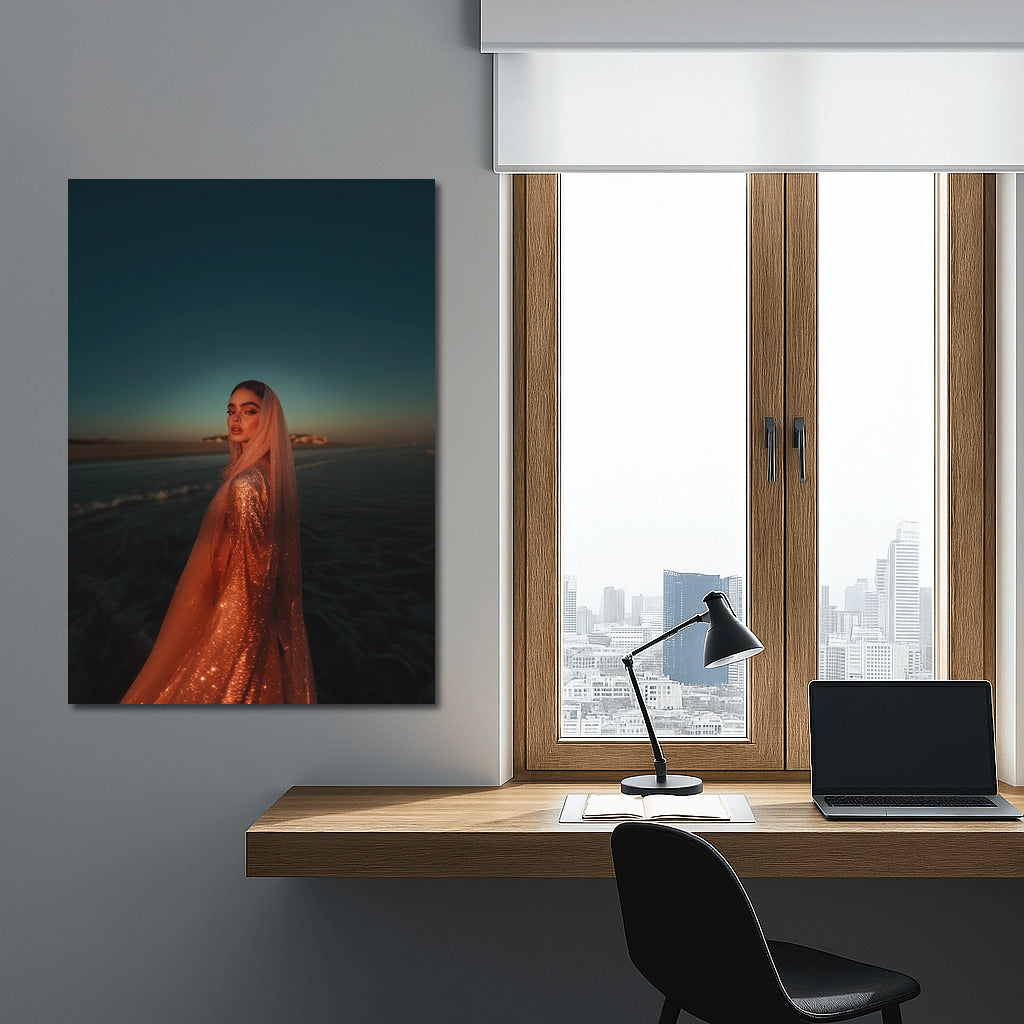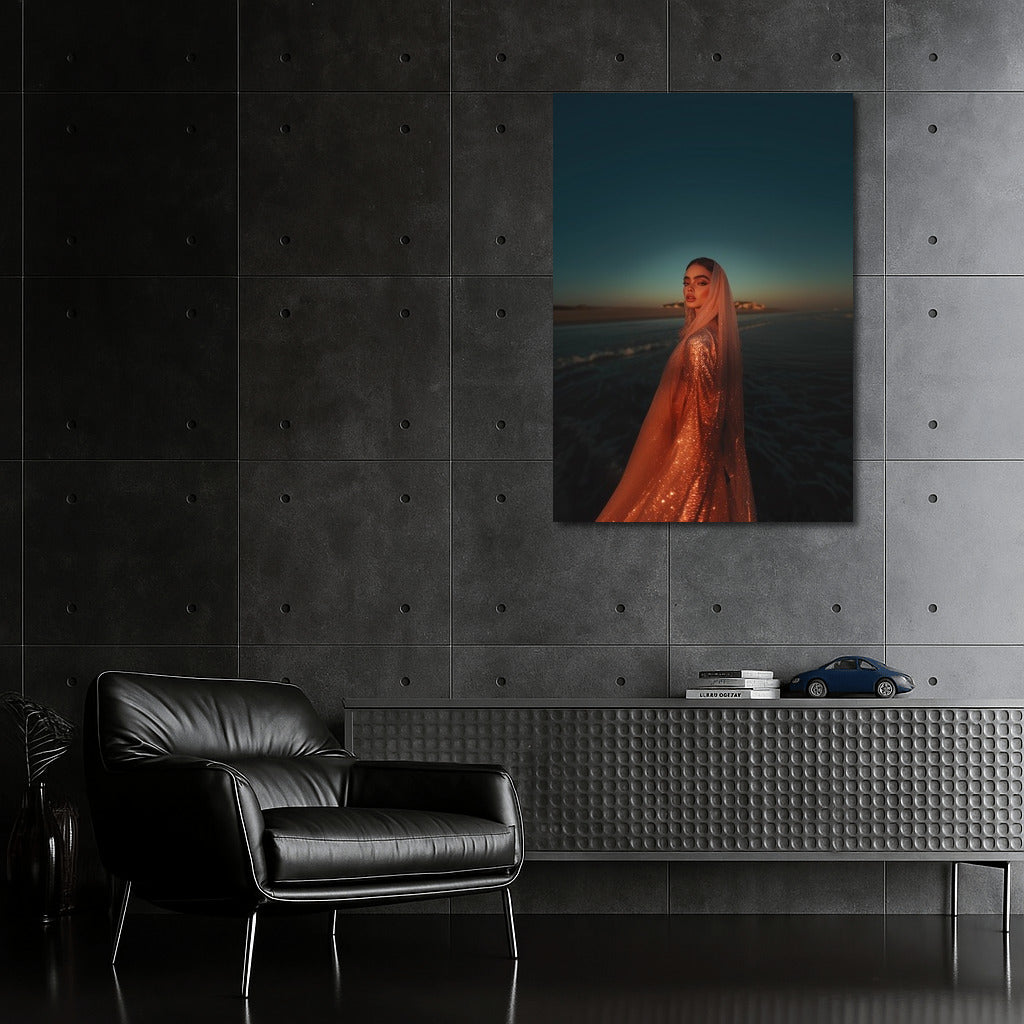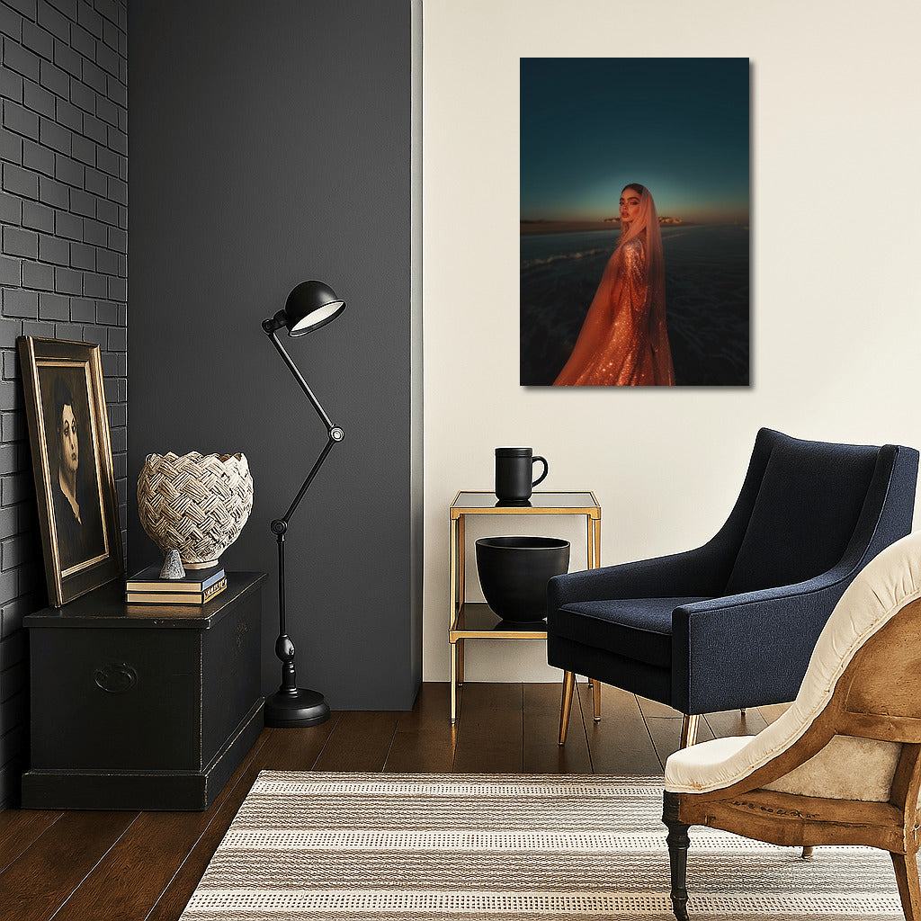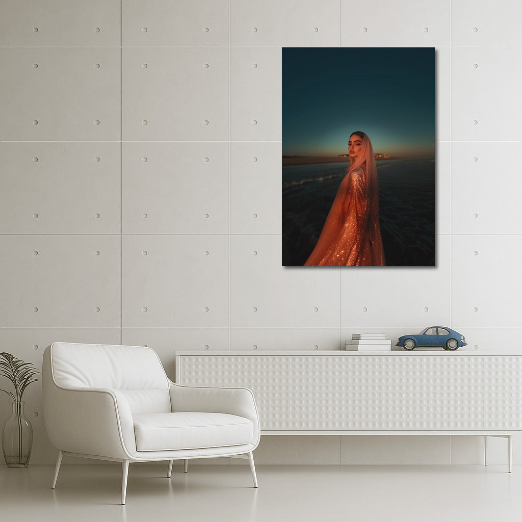 The magic of the sunset and the mystery of the figure on the beach. Add this painting to your wall art to create a dreamy atmosphere. See more from the collection: Wall Art with Women