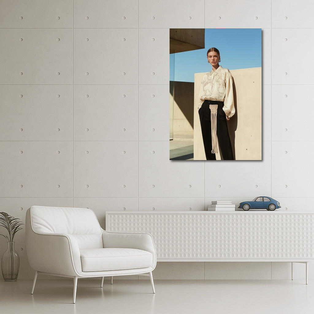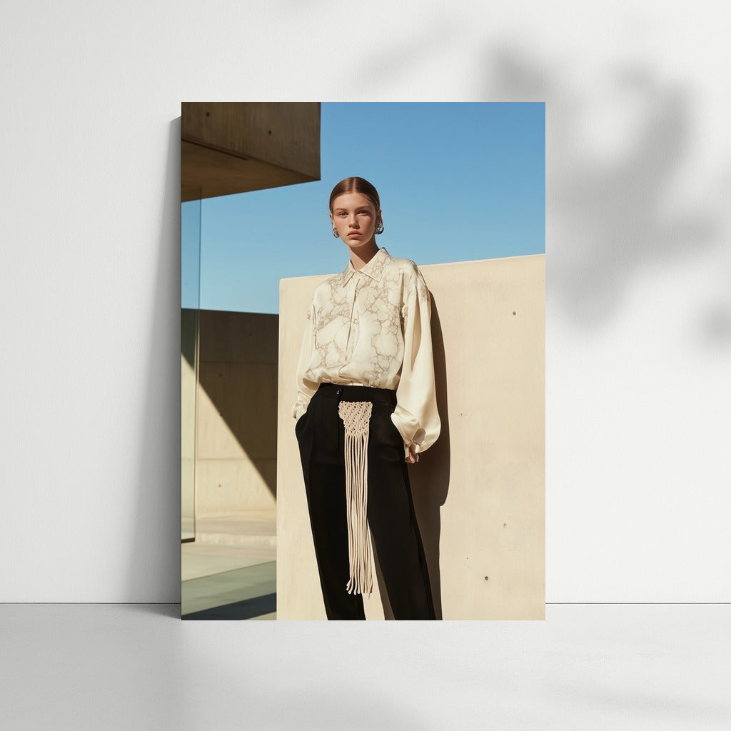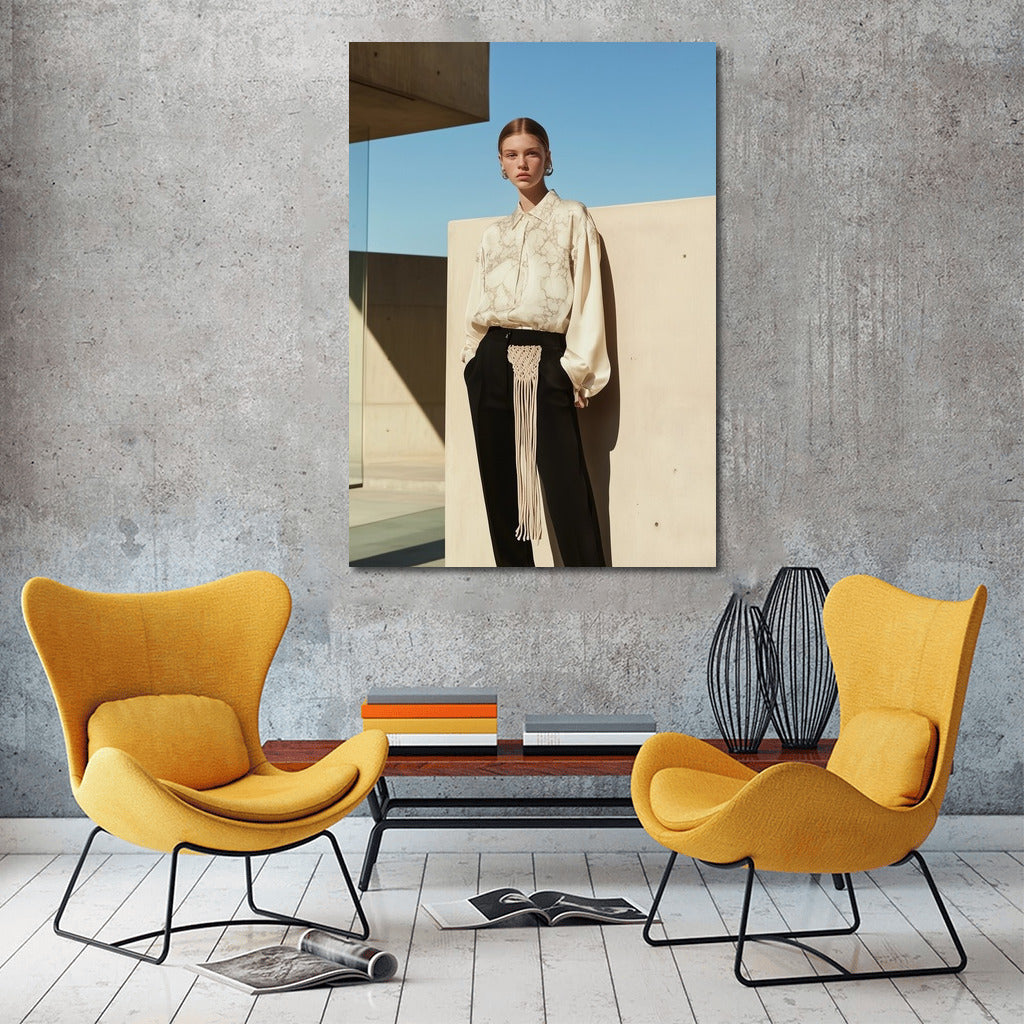 Minimalist girl image with architecture background. Modern poster for stylish wall art. See more from the collection: Wall Art with Women