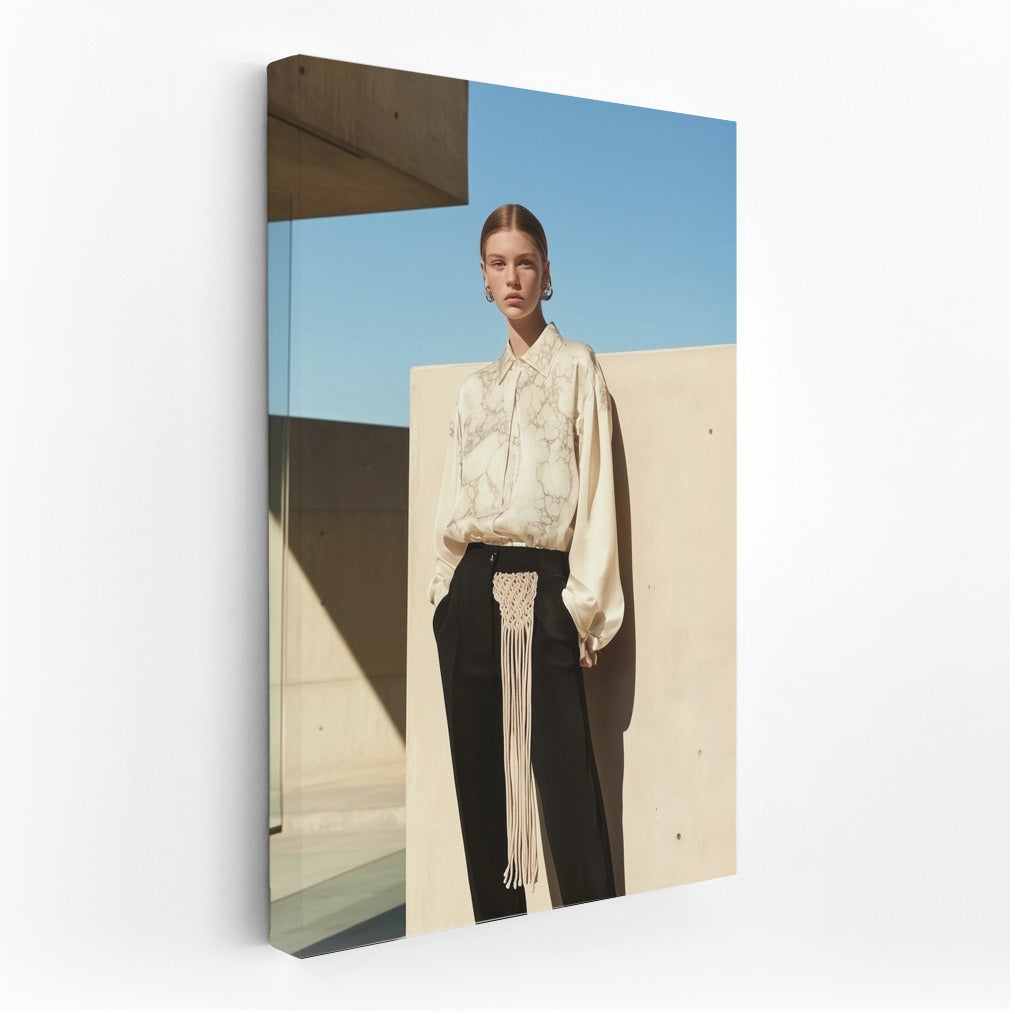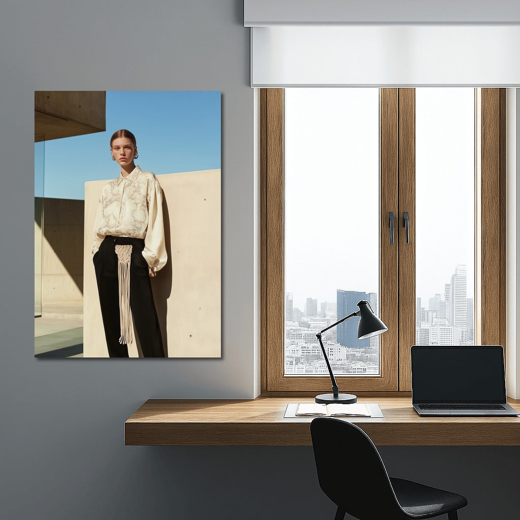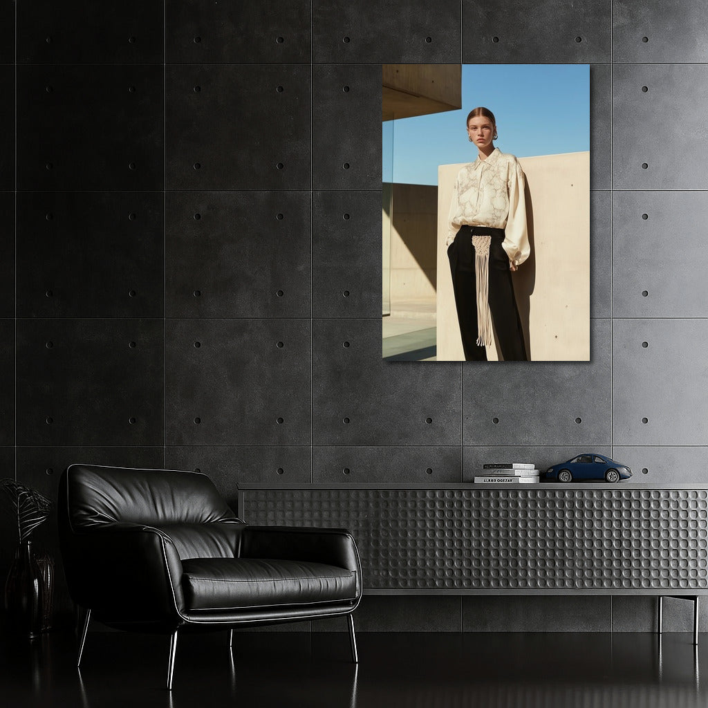 Minimalist girl image with architecture background. Modern poster for stylish wall art. See more from the collection: Wall Art with Women
