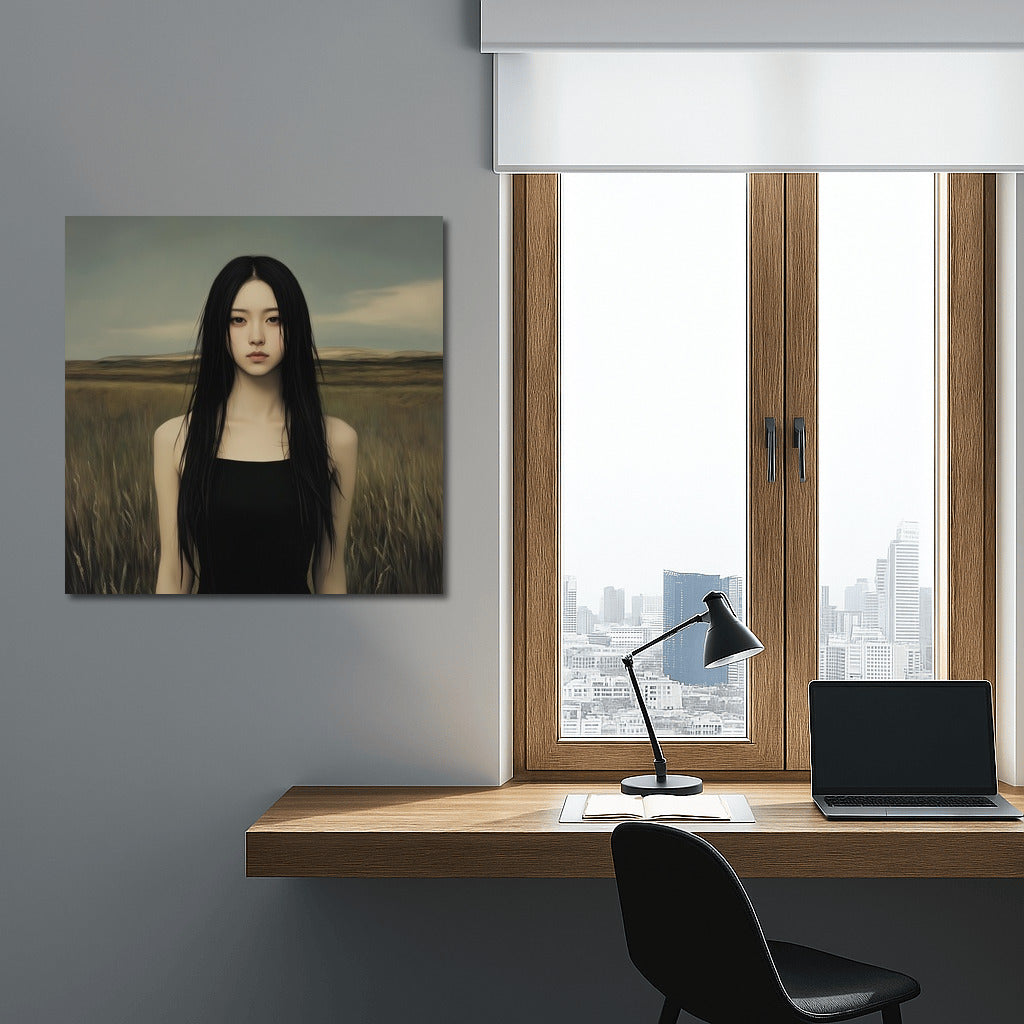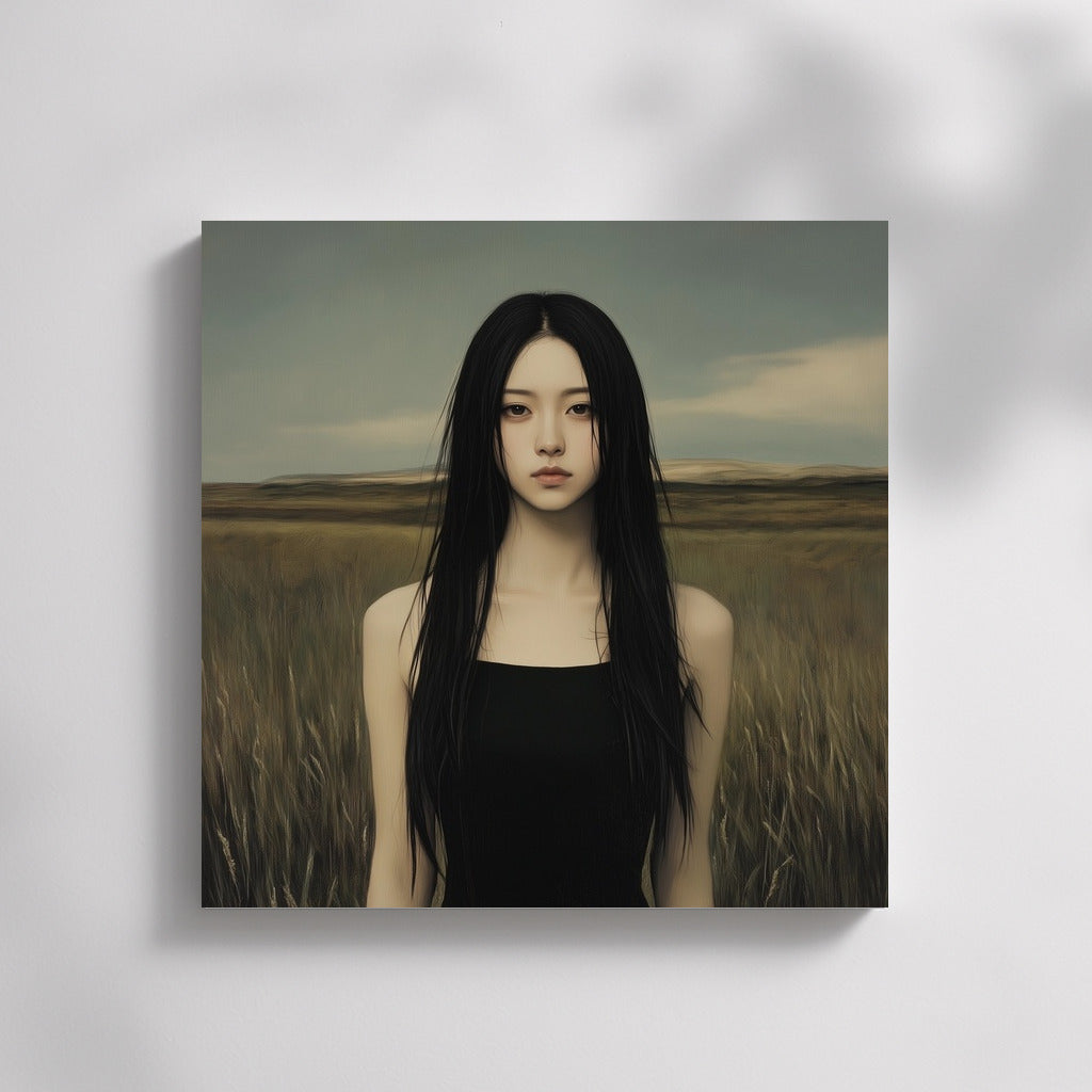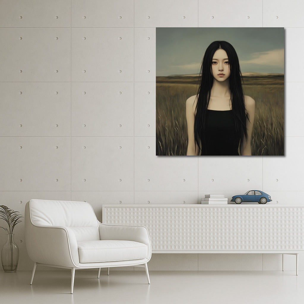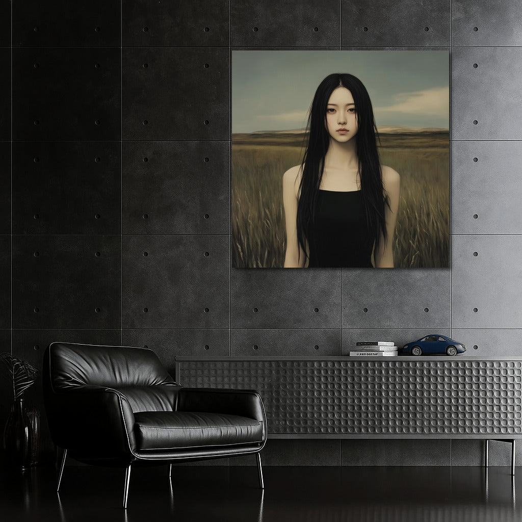 Inspirational poster: a mysterious figure among endless fields. Add an atmosphere of mystery to your interior. See more from the collection: Wall Art with Women