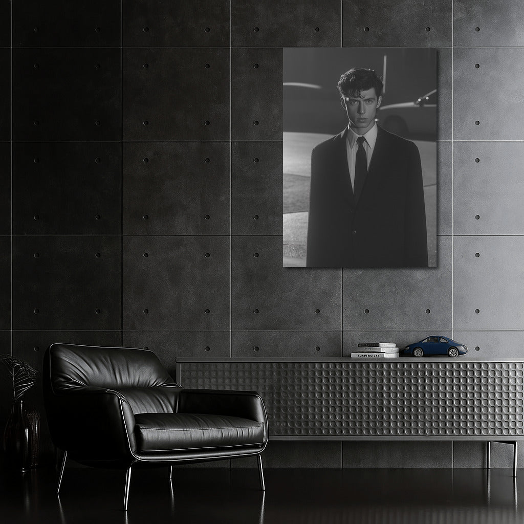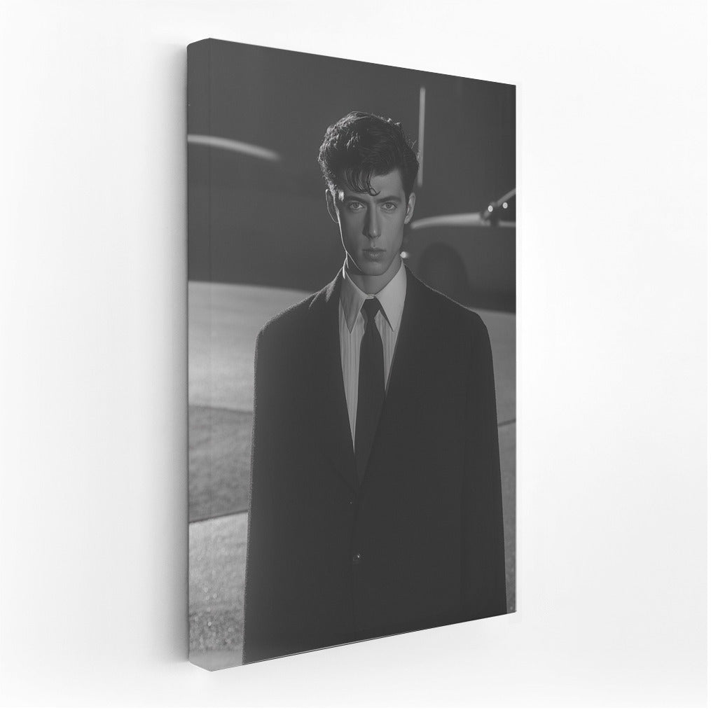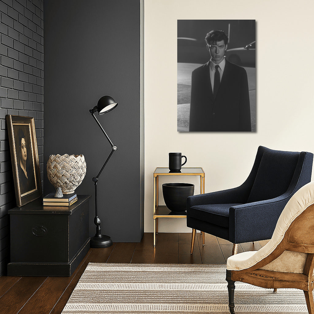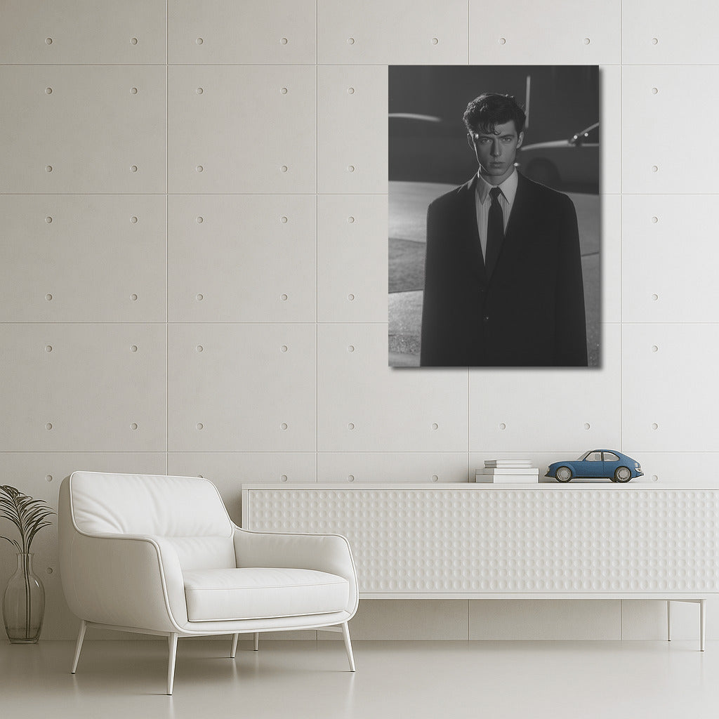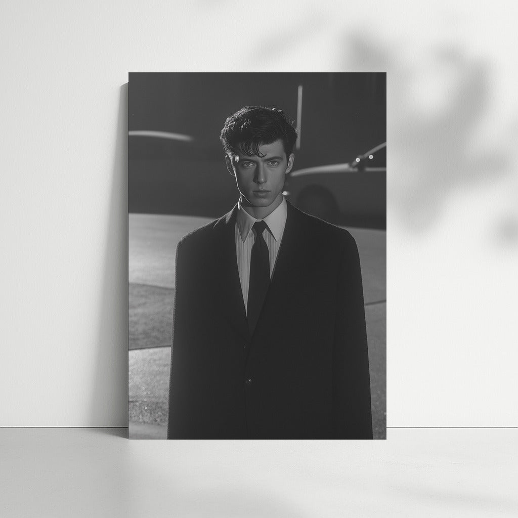 Mystery of the night: stylish silhouette in black and white poster. This wall art will add intrigue to your interior. See more from the collection: Black and White Art