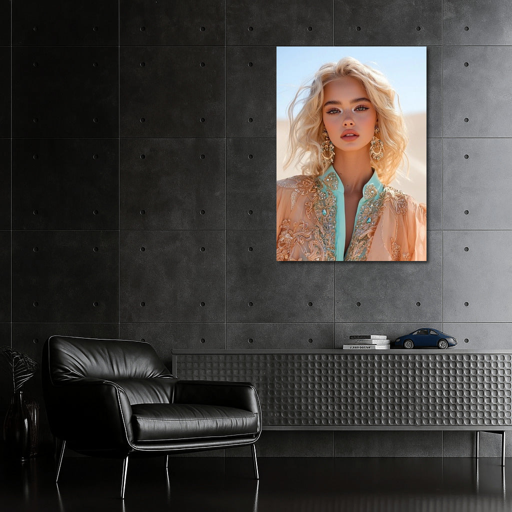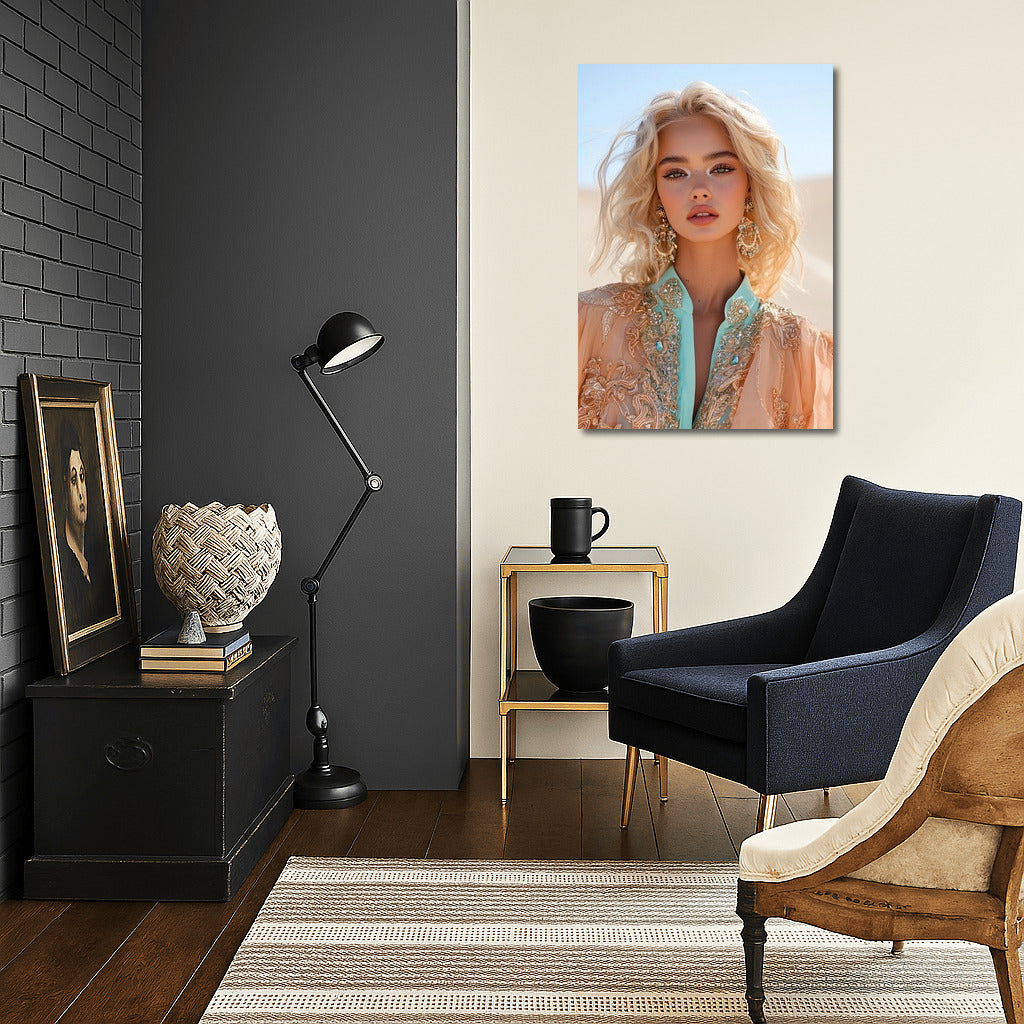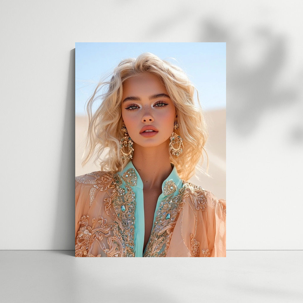An elegant painting featuring a refined figure in the desert. Perfect wall art to create a dreamy atmosphere. See more from the collection: Wall Art with Women