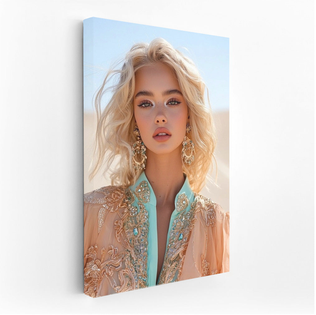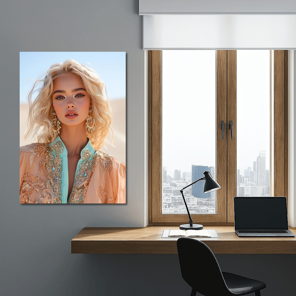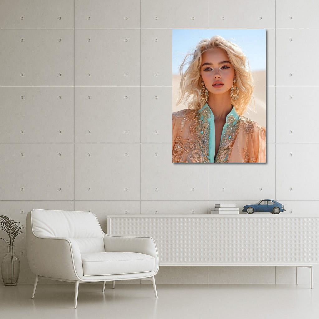 An elegant painting featuring a refined figure in the desert. Perfect wall art to create a dreamy atmosphere. See more from the collection: Wall Art with Women