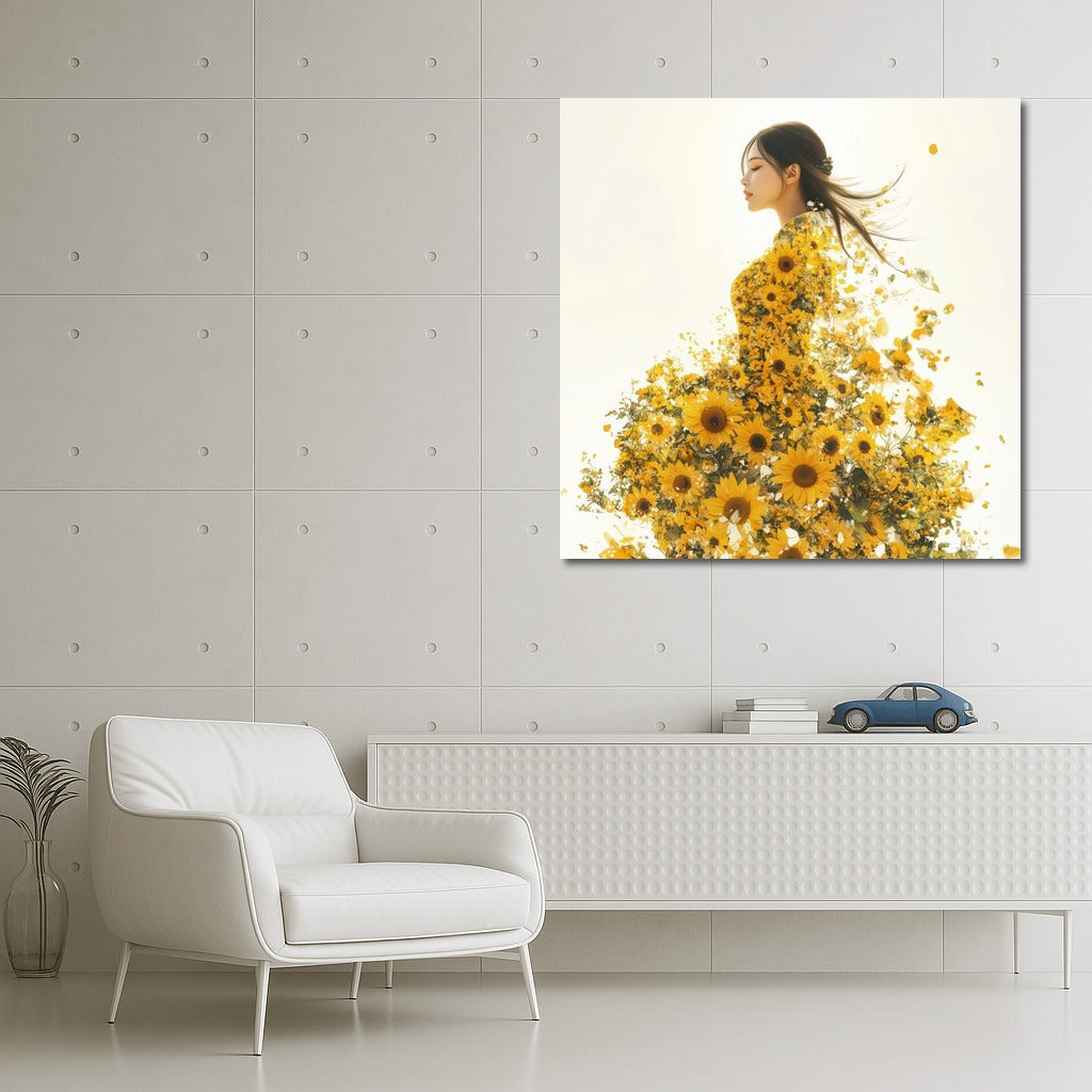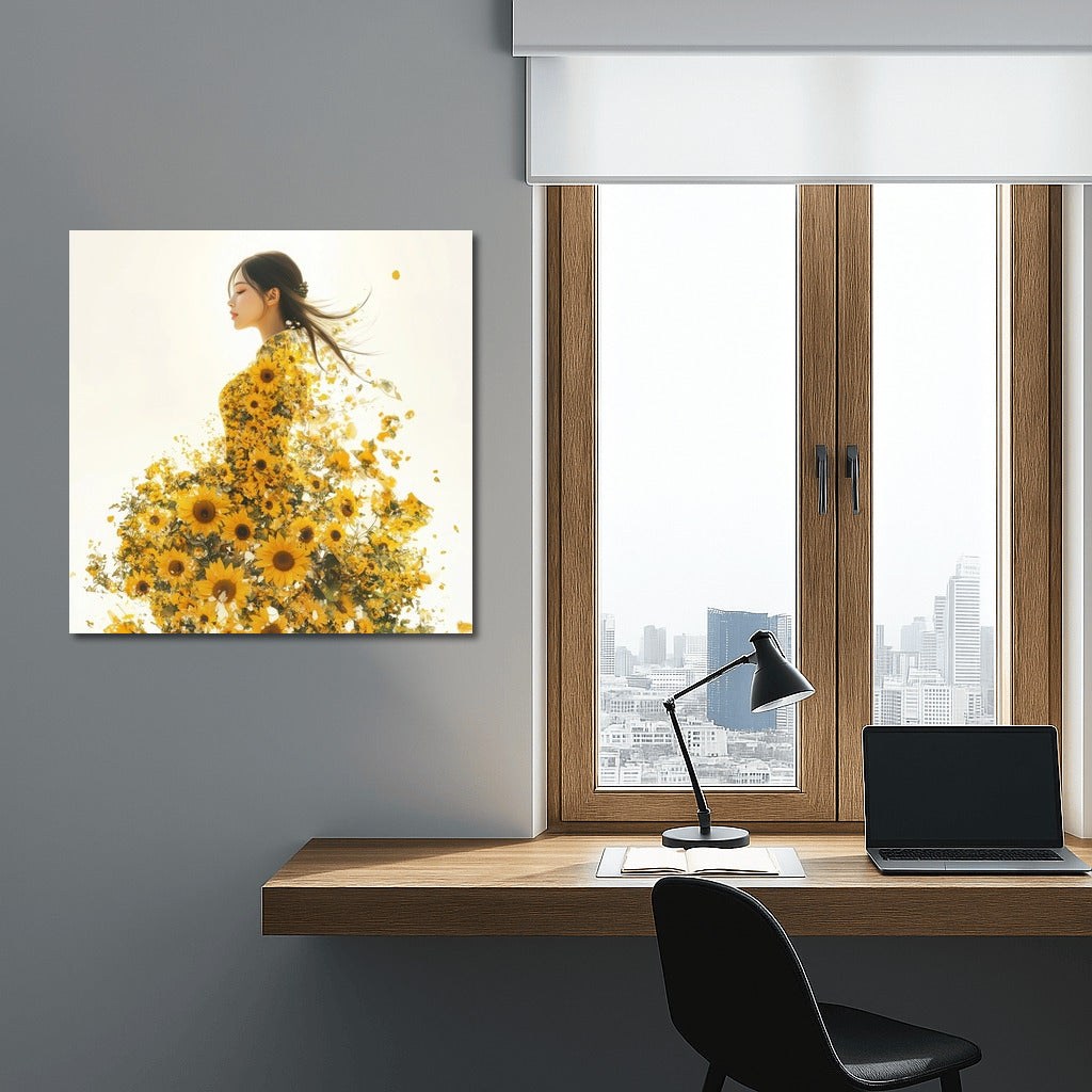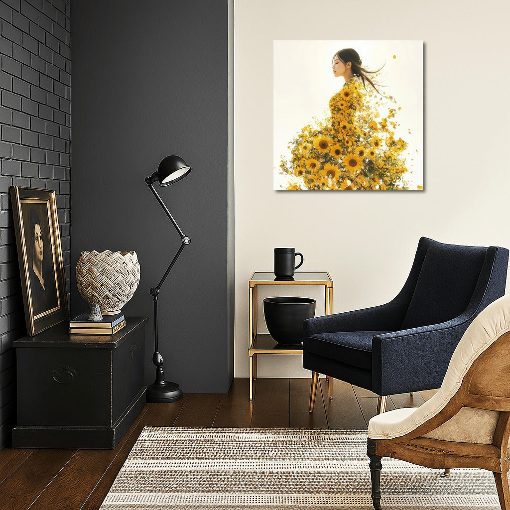 Floral Extravaganza poster: A neutral silhouette comes alive in a swirl of sunny flowers. Wall art that inspires dreams. See more from the collection: Mixed Wall Art