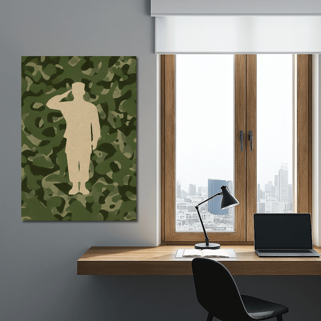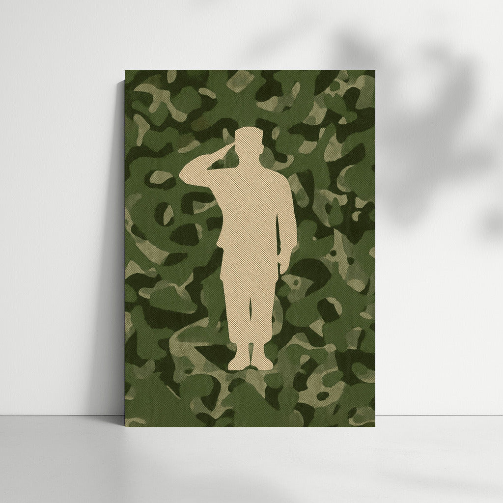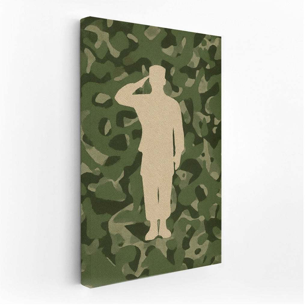 Silhouette of a Saluting Veteran on a Camouflage Background Wall Art
